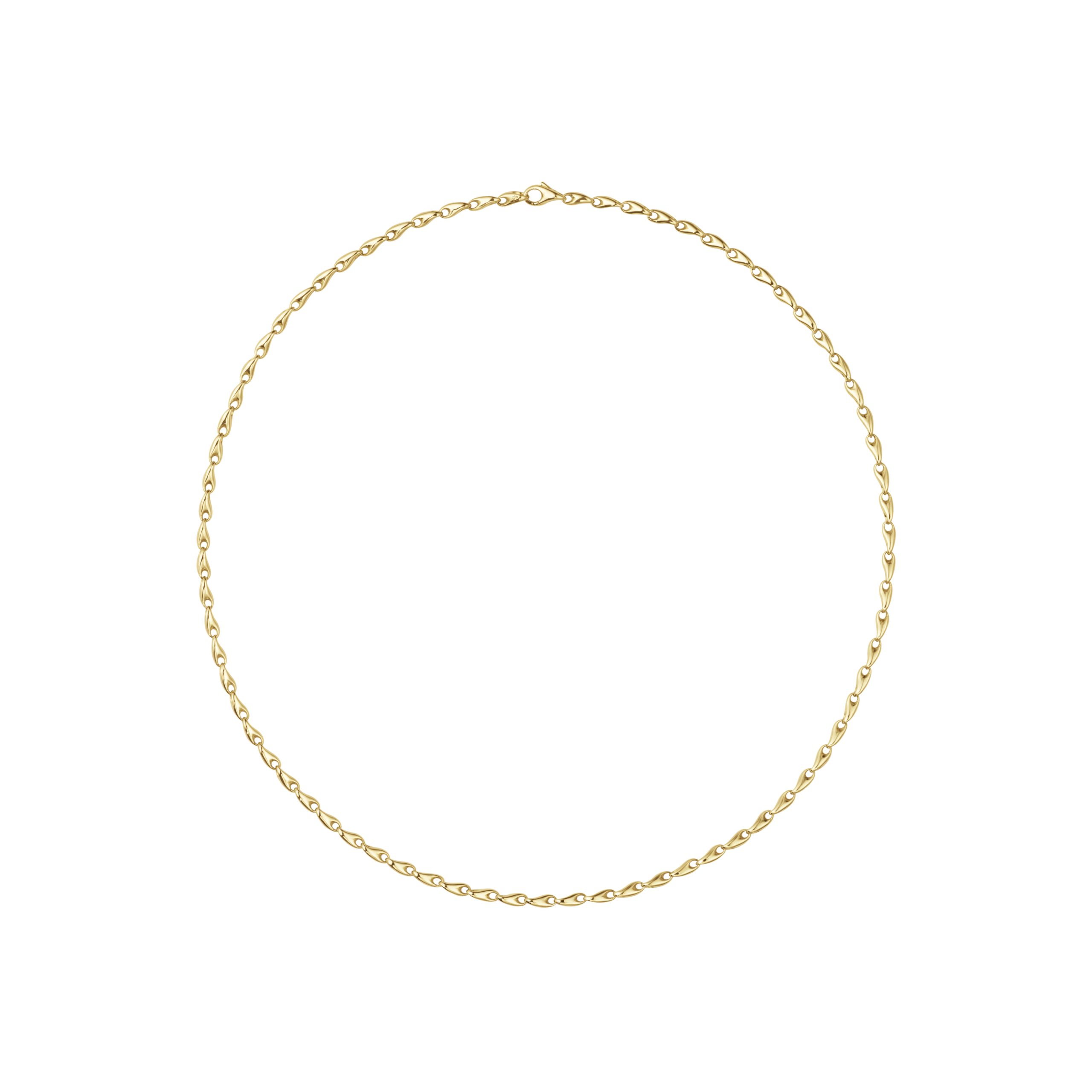 This quietly refined gold necklace is a contemporary reimagining of classic chain jewellery, as envisioned by artist and designer Jacqueline Rabun. Its slim gold links are crafted in a droplet-like form, stringing together in a continuous flow that wraps gracefully around the neck.