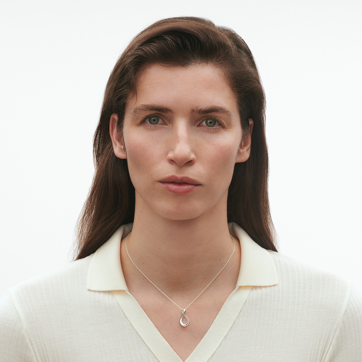 A perfect expression of Scandinavian minimalist jewellery, this pendant necklace takes the form of a single twist of sterling silver suspending from a fine chain. Inspired by the mathematical symbol for infinity, the shape could also be seen to represent endless love – very fitting for a gift that is worn over the heart.