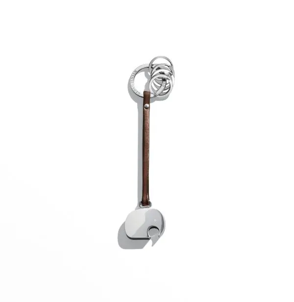 The iconic Georg Jensen elephant makes a charming appearance, hanging from a thin leather strap, on this designer key ring. Practical, instantly recognisable and easy to use, the key ring will also bring a smile to your face every time you open the door and so makes the perfect gift.