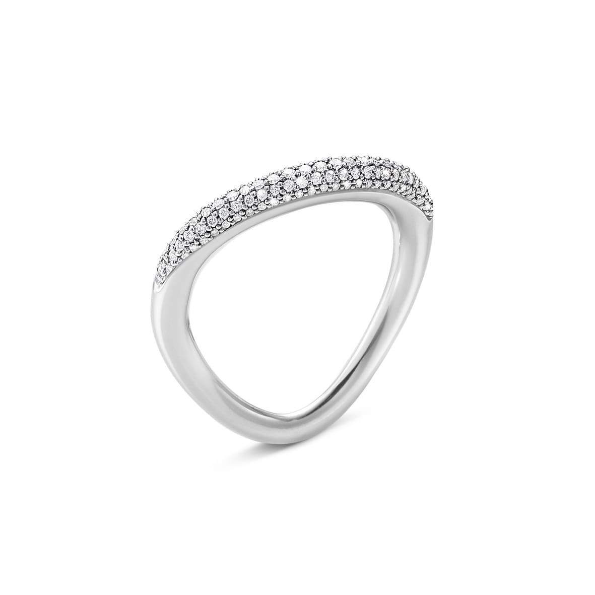 With its unusual, organic shape this sterling silver ring, pavé-set with brilliant cut diamonds, makes an imaginative eternity ring for the woman you love. Striking enough to be worn as a single statement ring, it also has a sense of understated luxury that means it can be stacked with others in a more casual and individual style.