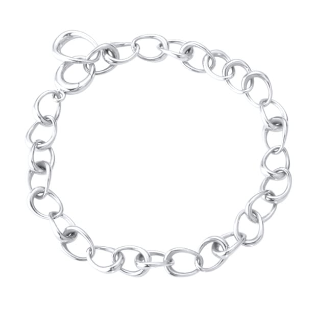 The signature egg shape defining Jacqueline Rabun’s Offspring collection is scaled and interlocked to create this light link bracelet. Crafted in sterling silver, it comes with an additional hanging oval link that acts as a small charm.