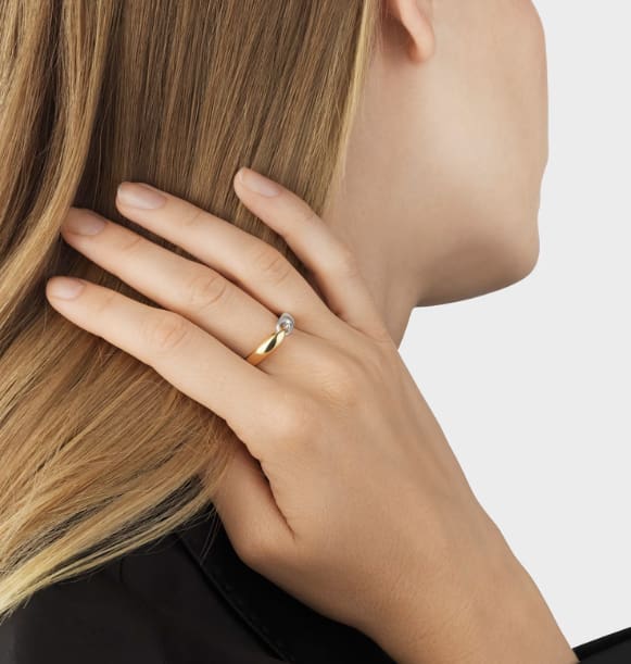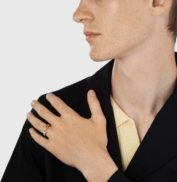 An eye-catching piece of soldered 18kt gold and sterling silver wraps around the finger, linking together to create this striking ring. Referencing the traditional chain design, the ring is created by Jacqueline Rabun and works beautifully alone or combined with pieces of varying metals and materials.
