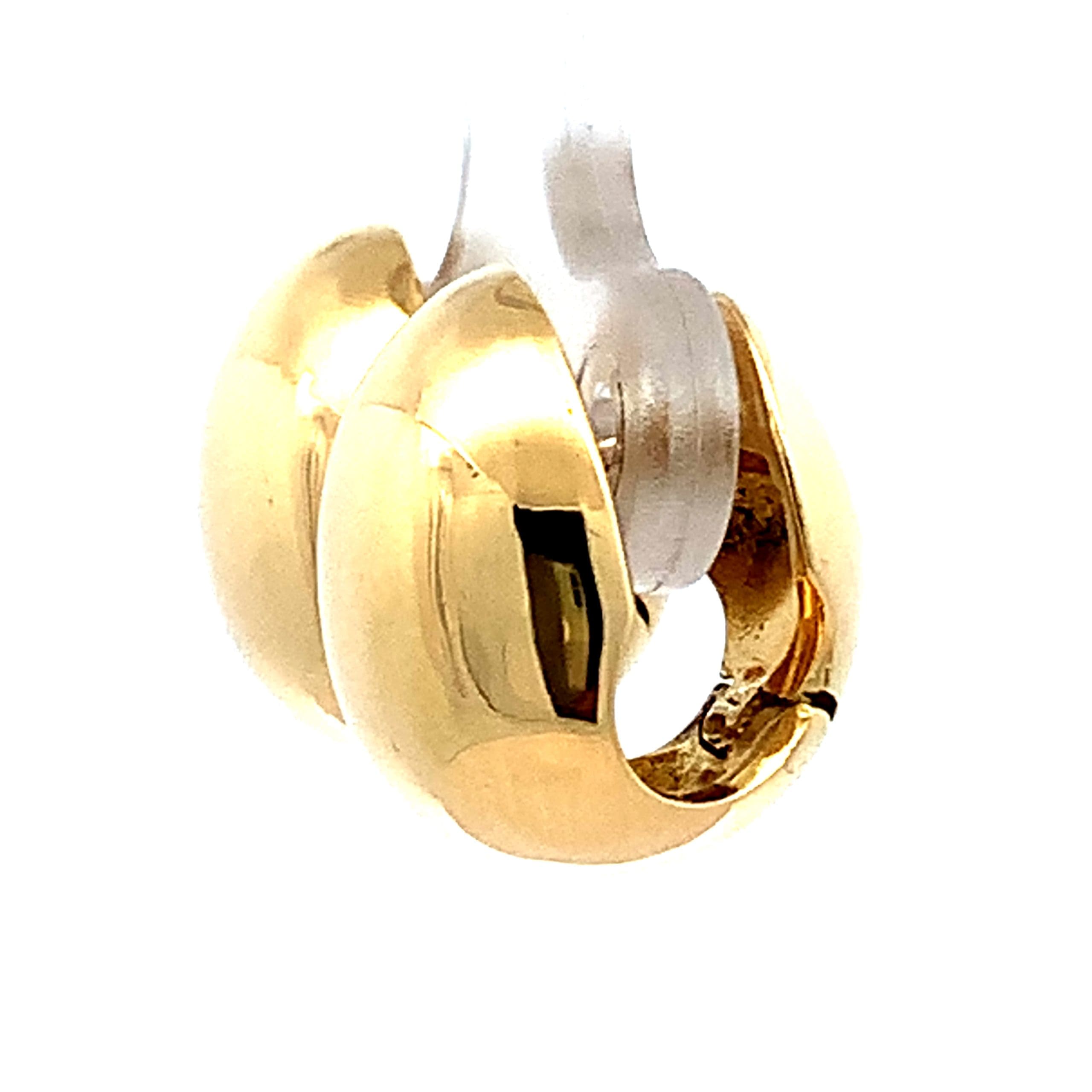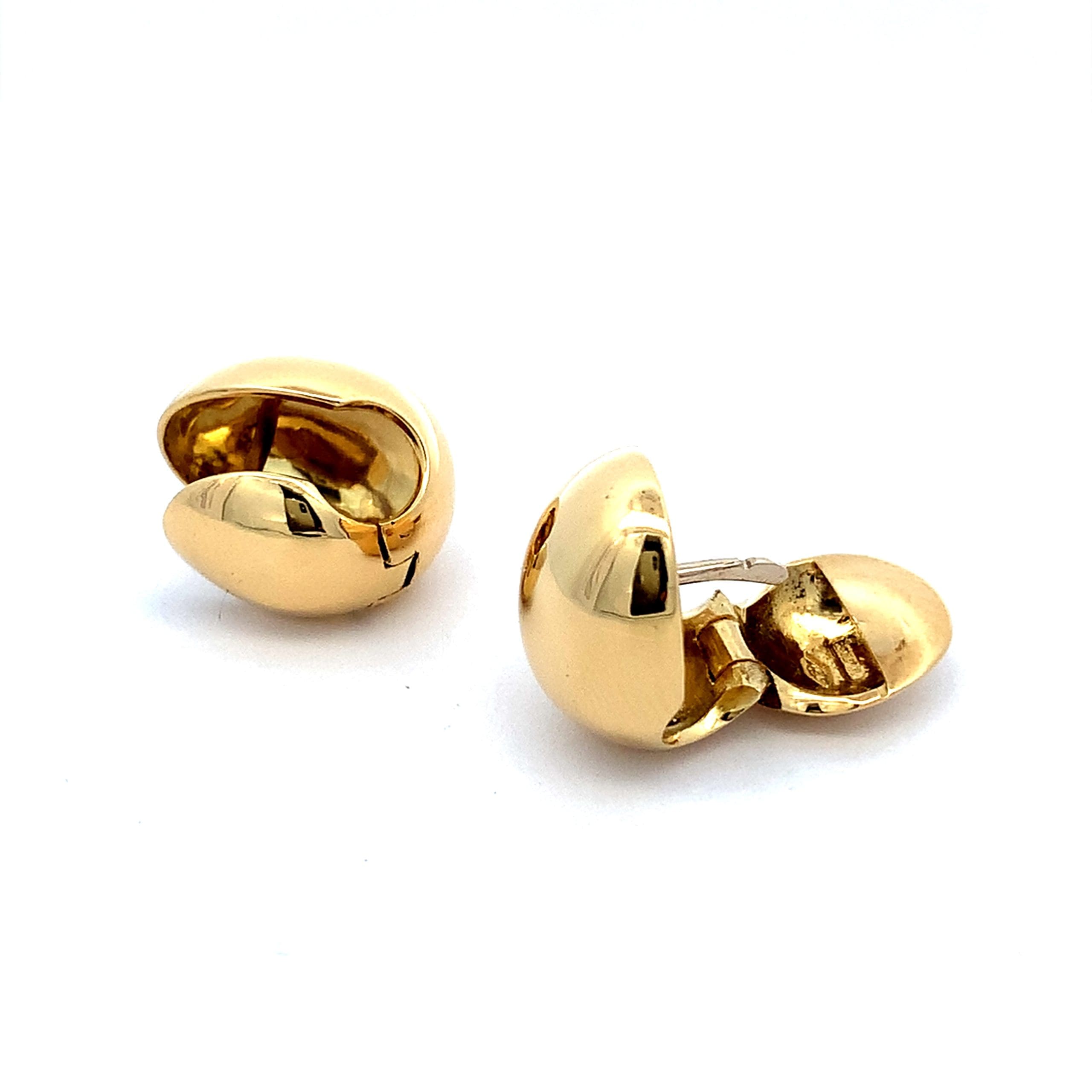 Oval form huggie style hinged earrings in 18ct yellow gold.