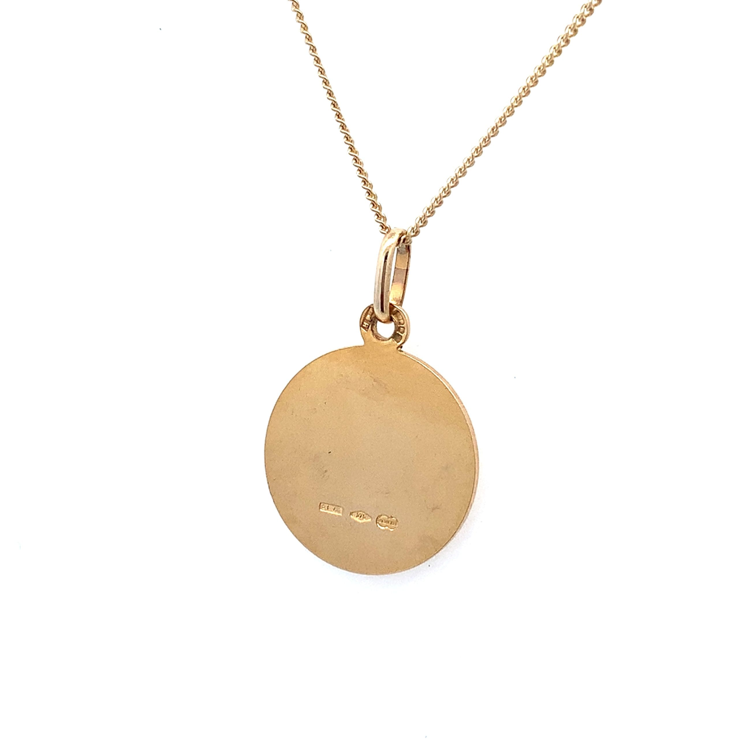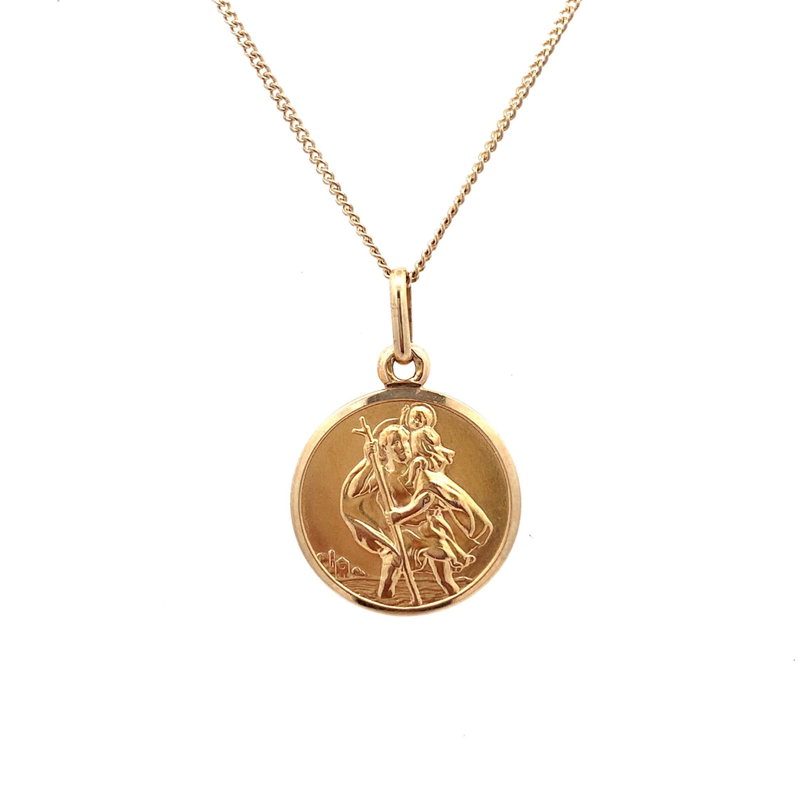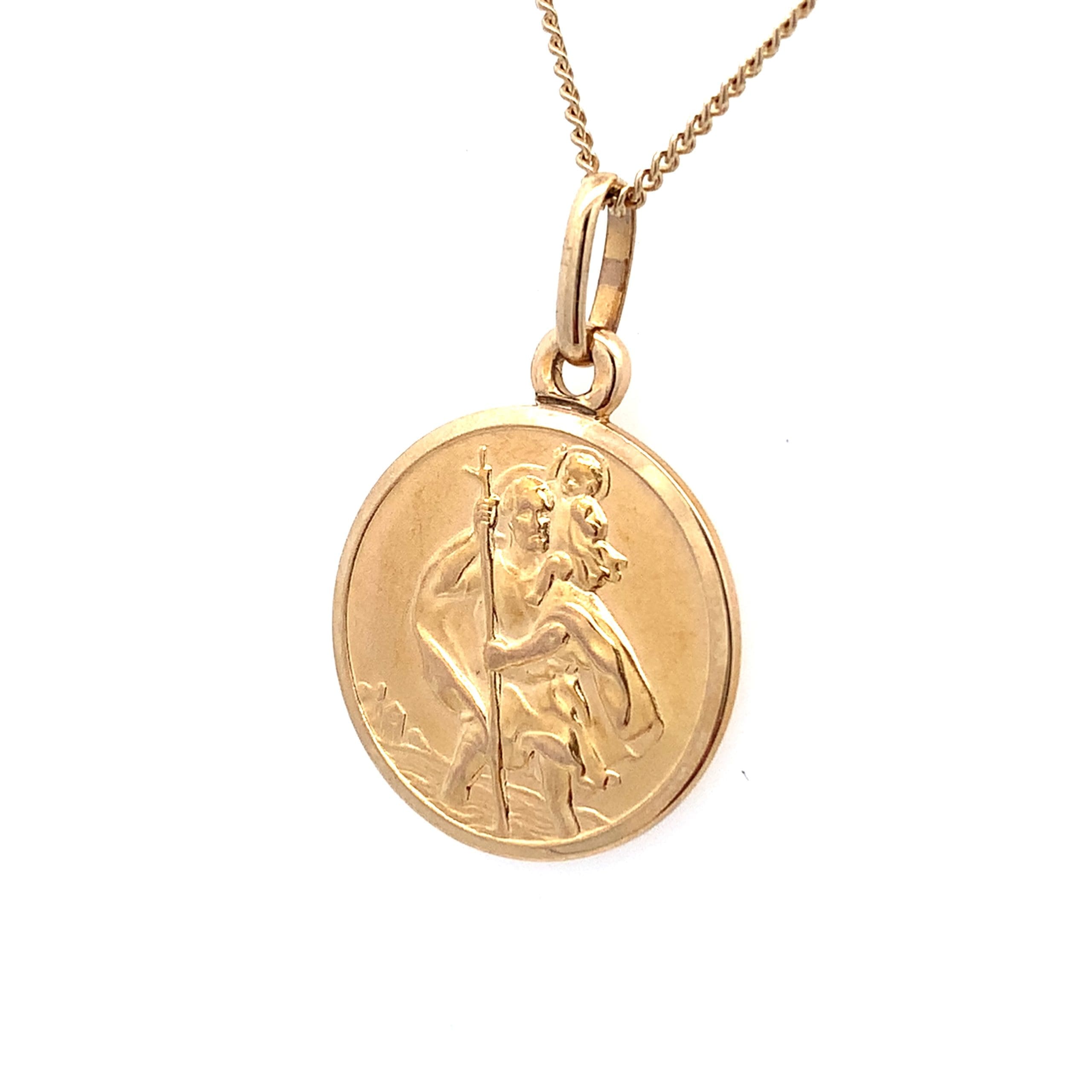 An attractively designed St. Christopher pendant and flat curb link chain with matt and polished finishes.
