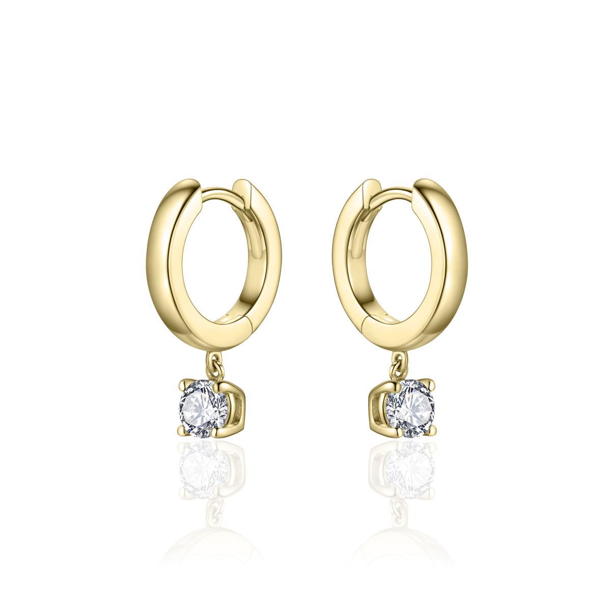 A strong pair of smooth yellow gold vermeil hinged hoop earrings with cubic zirconia set drops. Vermeil is a superior longer lasting gold plate finish.