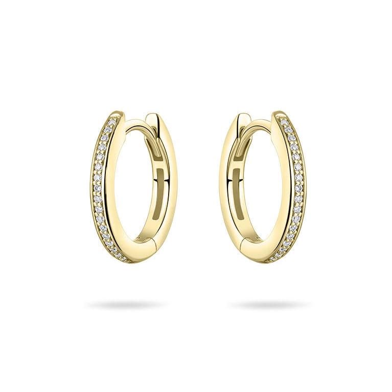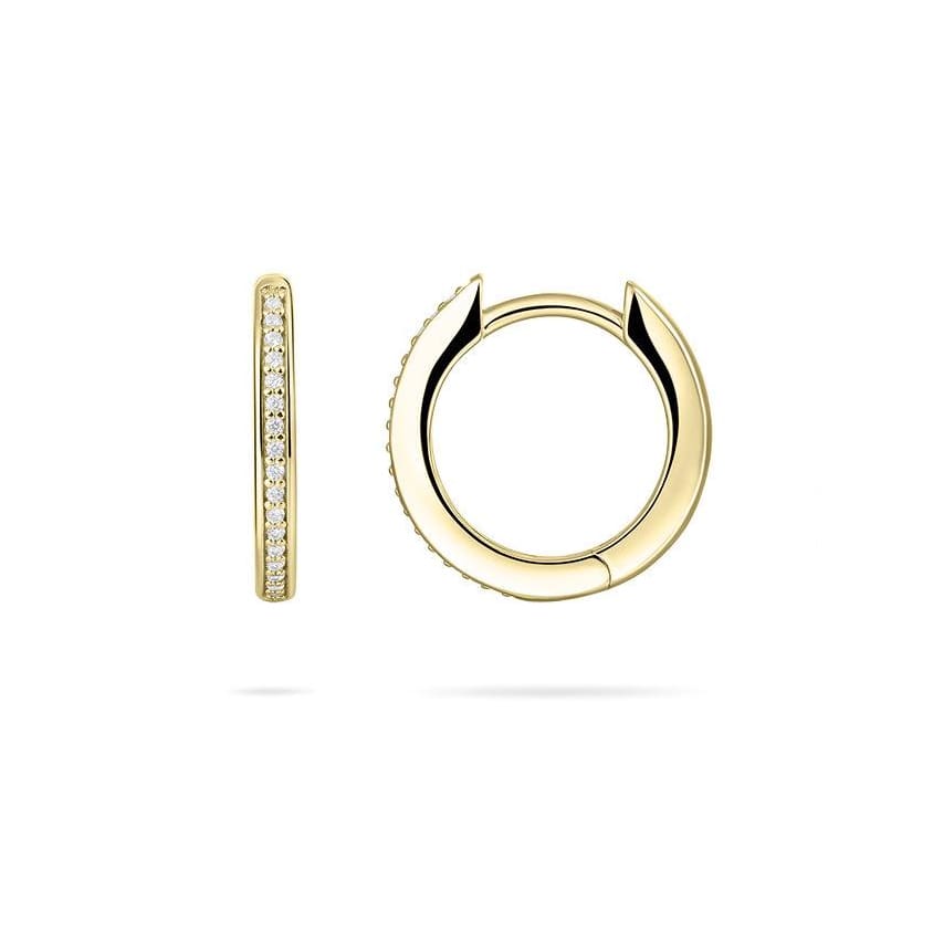 A strong pair of smooth yellow gold vermeil hinged hoop earrings with cubic zirconia pave fronts. Vermeil is a superior longer lasting gold plate finish.