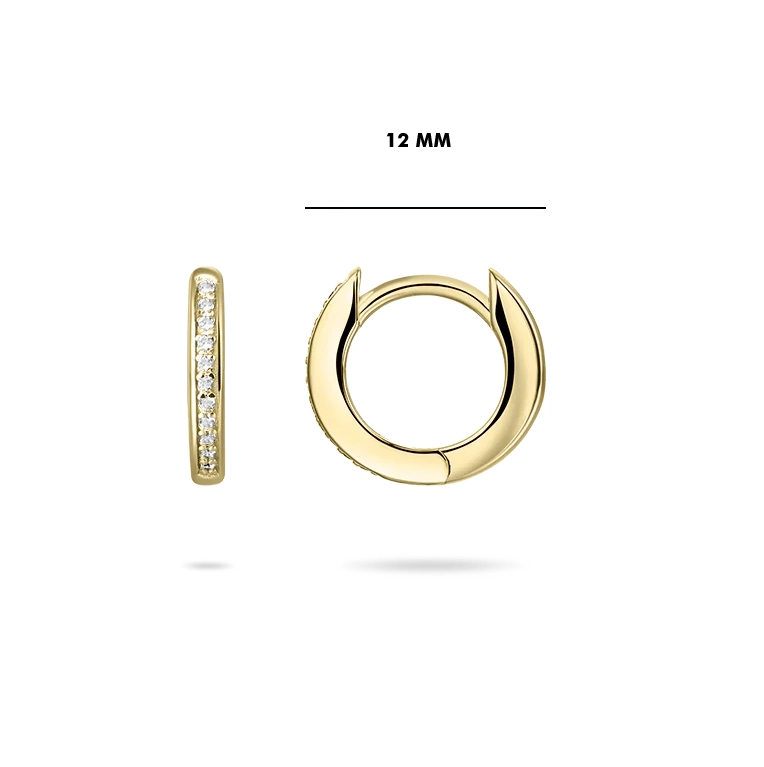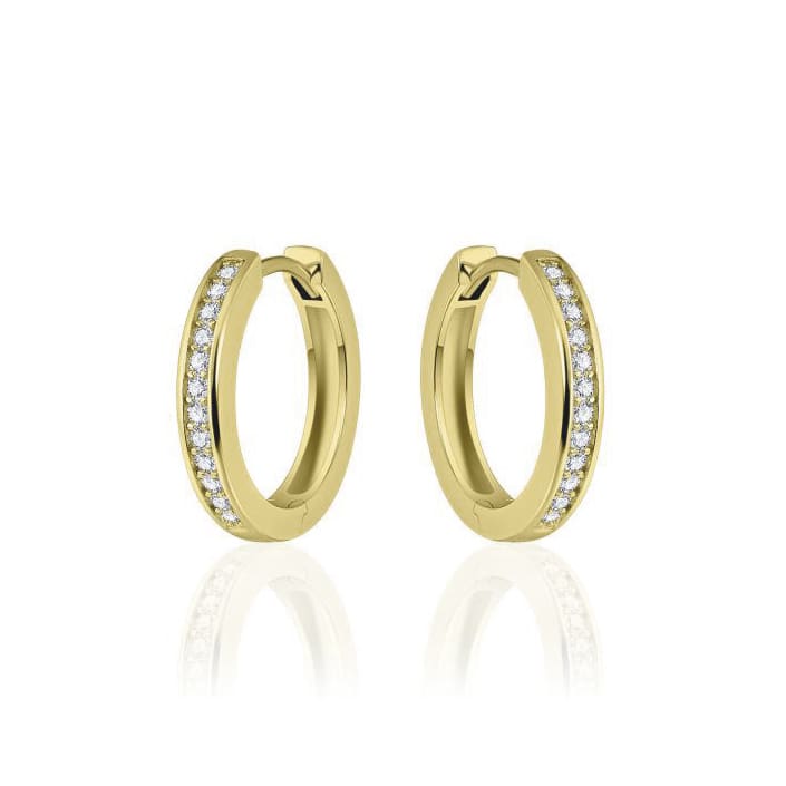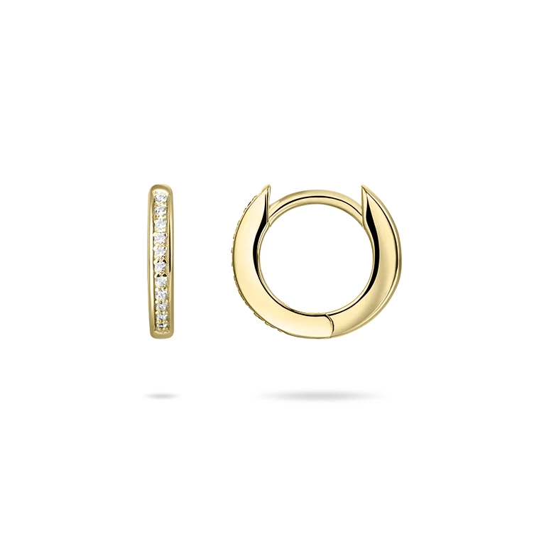 A strong pair of smooth yellow gold vermeil hinged hoop earrings with cubic zirconia pave fronts. Vermeil is a superior longer lasting gold plate finish.