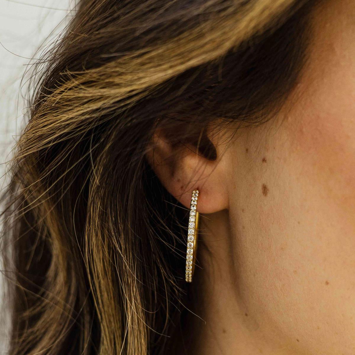 A strong pair of smooth yellow gold vermeil hinged hoop earrings with cubic zirconia pave fronts. Vermeil is a superior longer lasting gold plate finish.