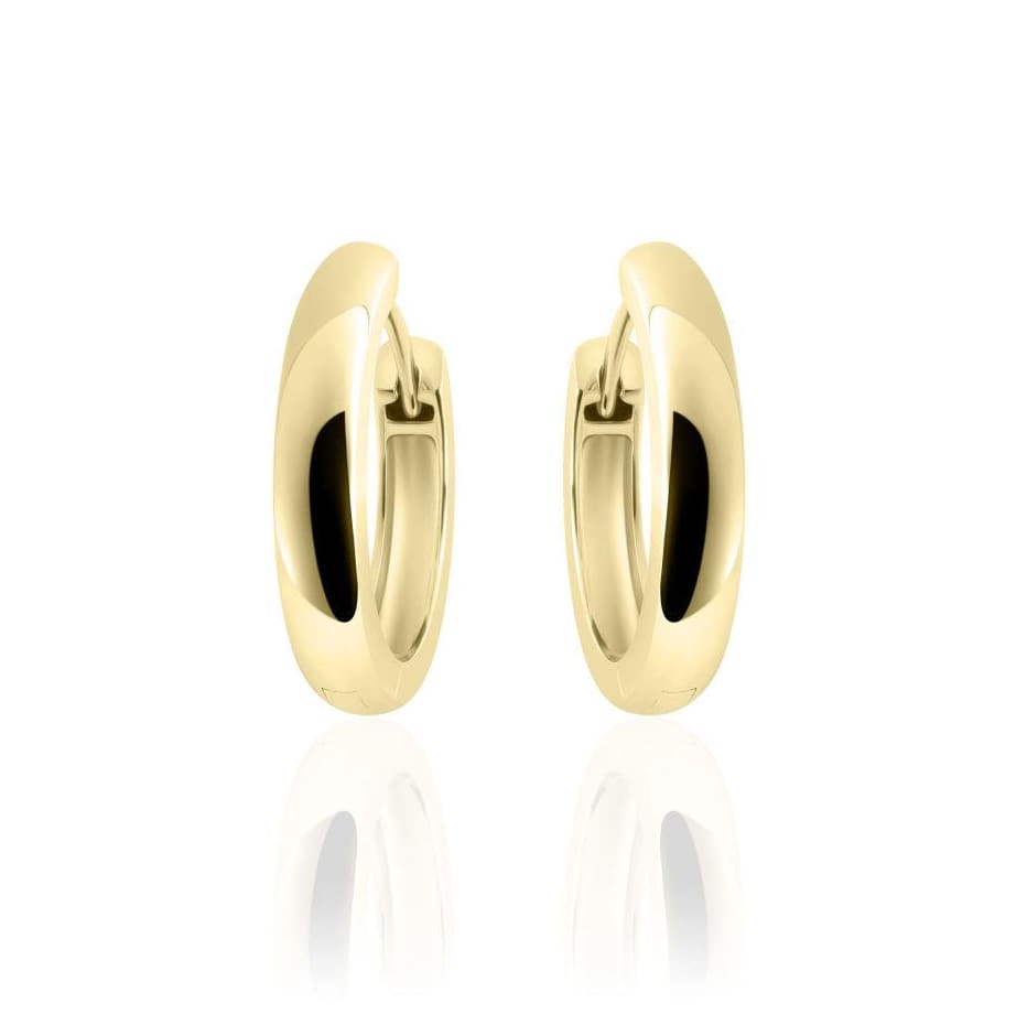 A strong pair of smooth yellow gold vermeil hinged hoop earrings. Vermeil is a superior longer lasting gold plate finish.