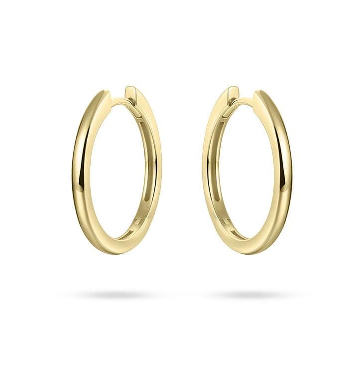A strong pair of smooth yellow gold vermeil hinged hoop earrings. Vermeil is a superior longer lasting gold plate finish.