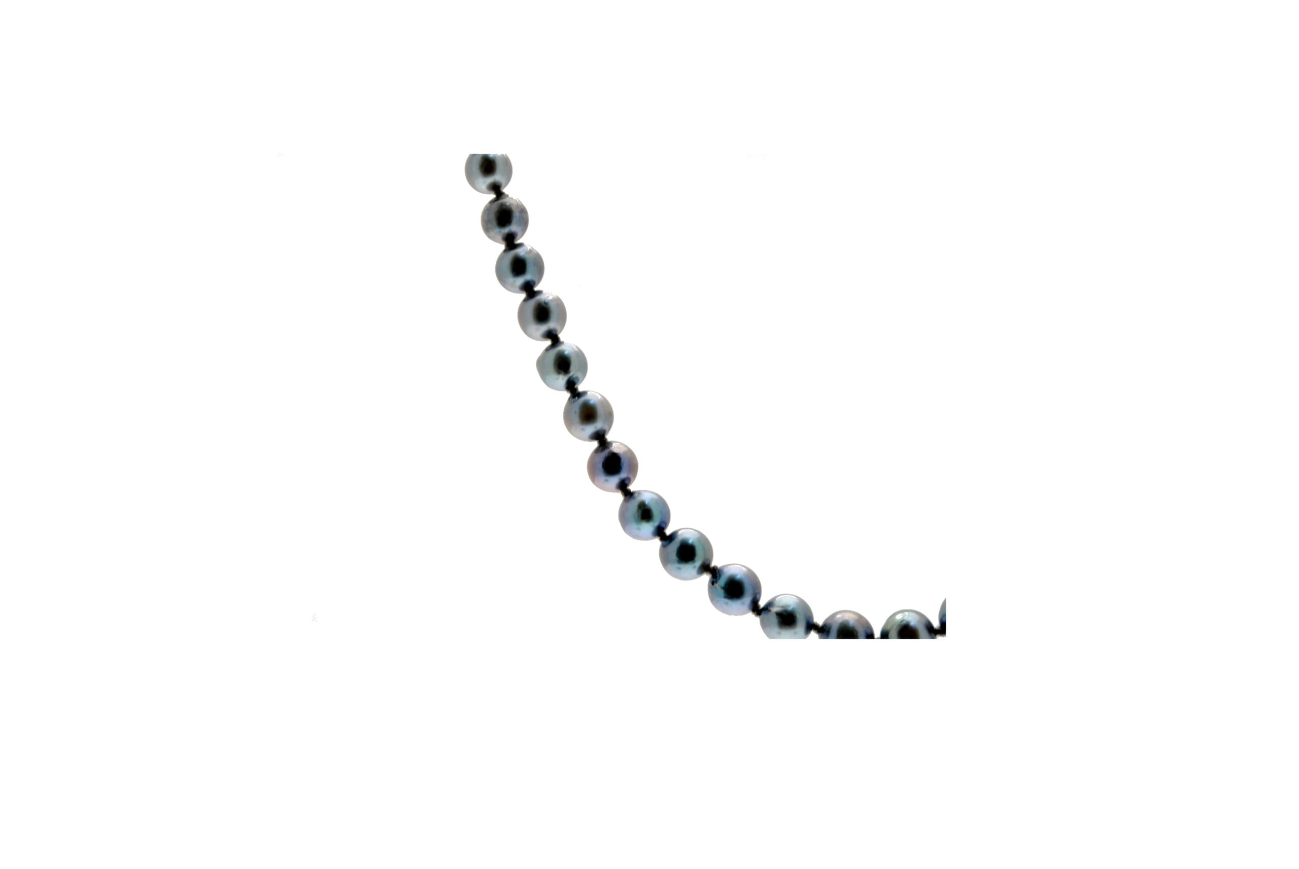 A versatile grey / silver freshwater pearl necklace with a brushed finished white gold clasp.