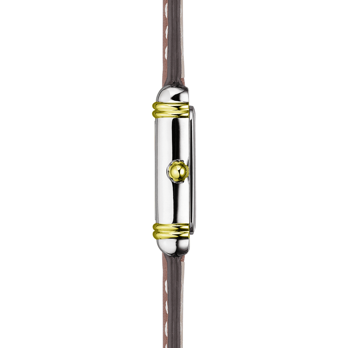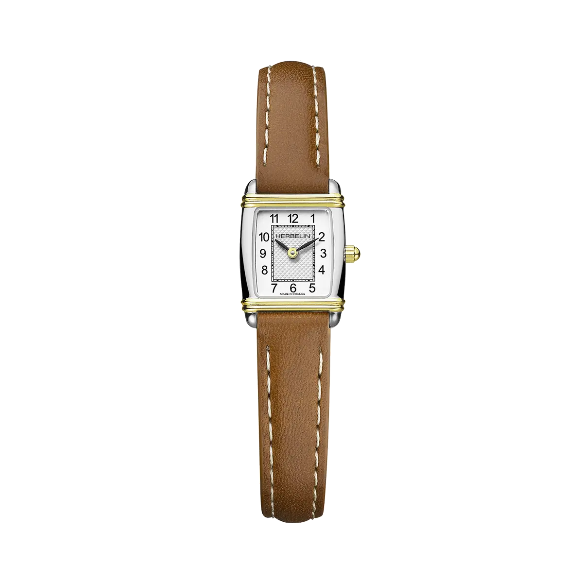 The stainless steel case with a touch of yellow gold PVD gives this Art Deco model a sober and neat design. The dial is completed by a Clous de Paris guilloche pattern giving a minimalist and refined touch to this timepiece.