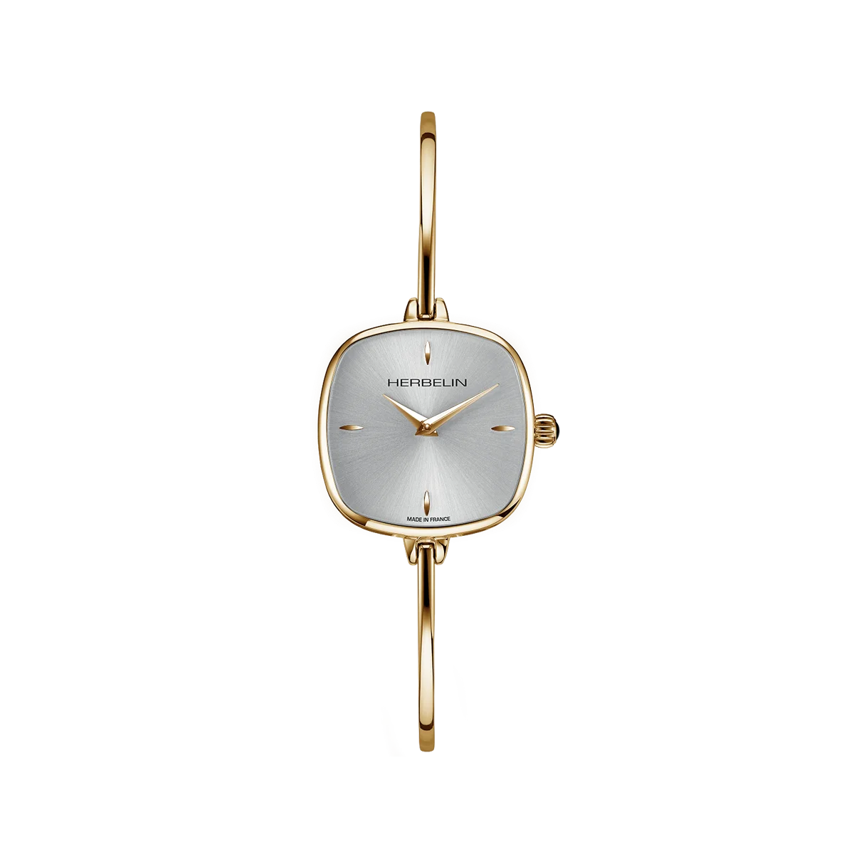 The yellow gold PVD pairs perfectly with the genuine mother-of-pearl of the dial. This Fil model appears as a true jewel. The square case with rounded corners gives the watch a modern and elegant look.