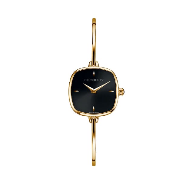 Fil is the collection that represents femininity and elegance. The black sunray dial is delicately complemented by discreet yellow gold PVD markers. The thin and rigid strap allows this watch to dress with delicacy and modernity the feminine wrists.