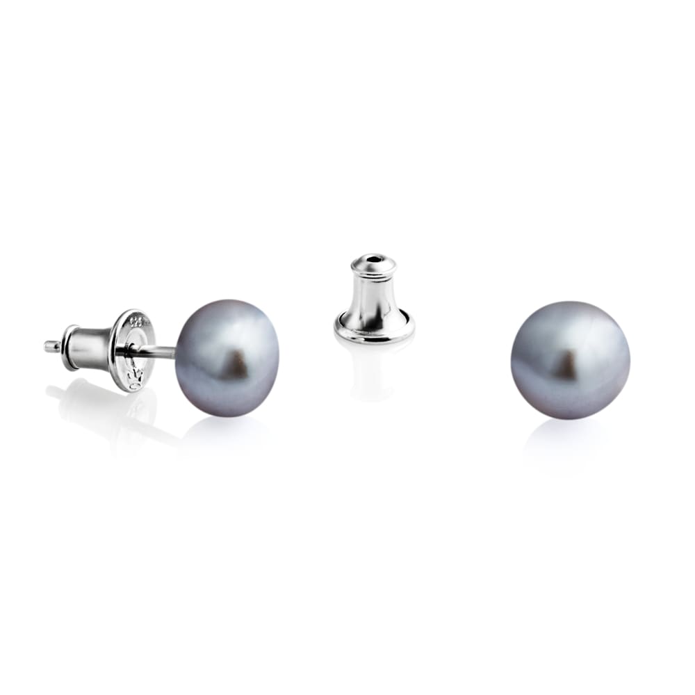 7 – 7.5 mm silver Freshwater pearl stud earrings. Midsummer’s Eve Dipped in the silver glow of night, these Freshwater pearl studs reflect the luminate beauty of nocturne garden scenes.