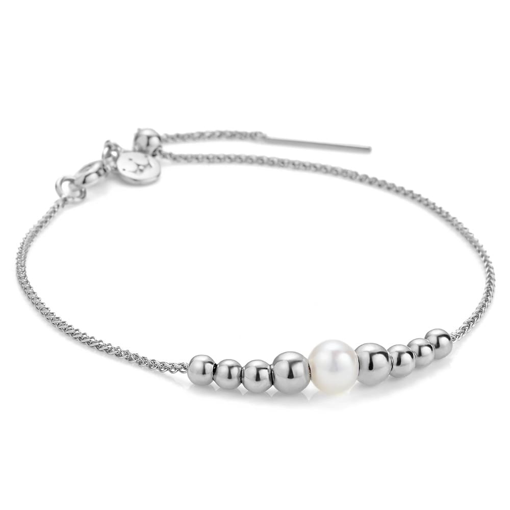 Remember the good times with a string of pebbles and a single pearl. Refined and stylish, this simple design will lift your look on casual days or for special occasions. A single Crown quality Freshwater pearl and sterling silver pebbles on a sterling silver chain.