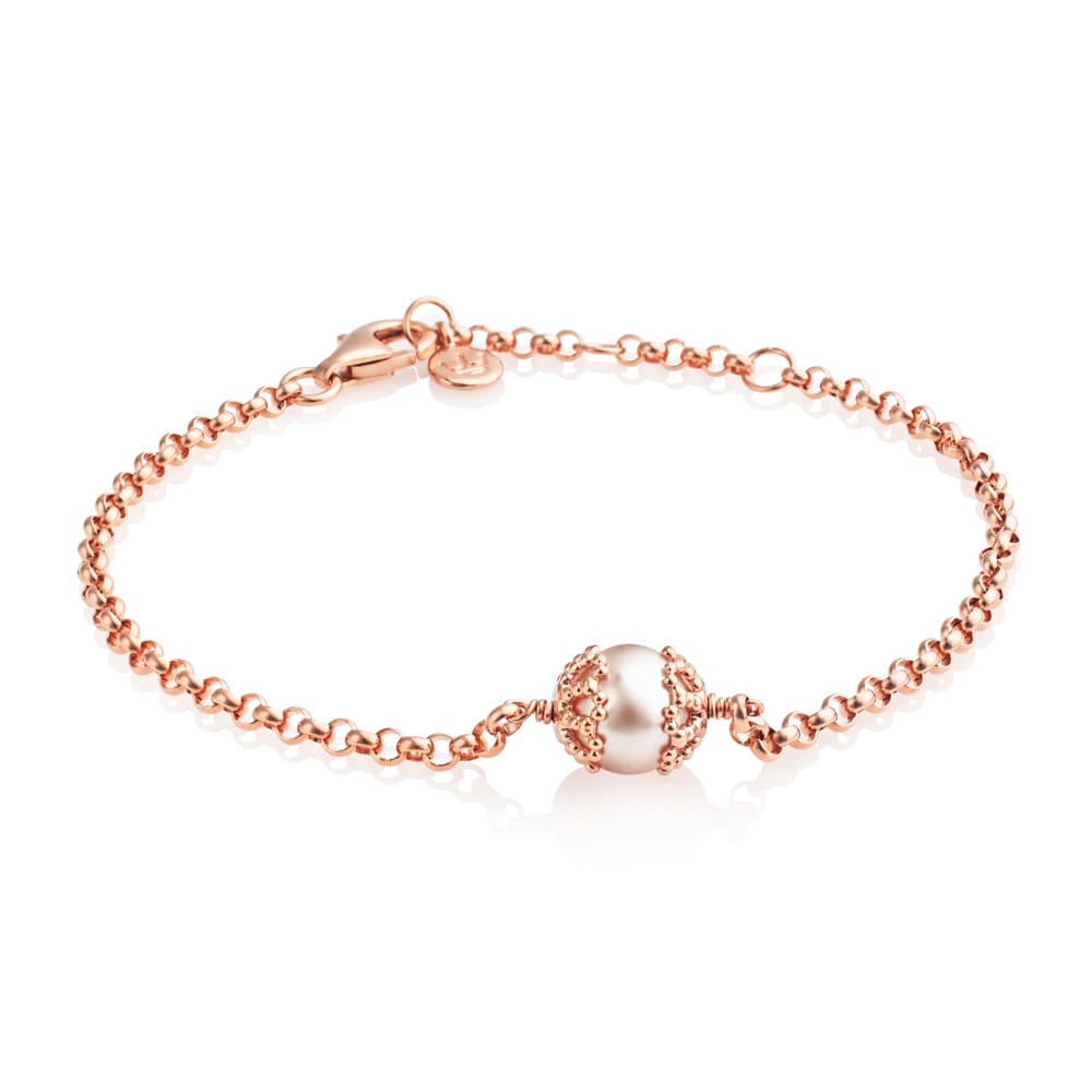 Ultimately romantic with a subtle touch of vintage, each piece designed by Emma-Kate recalls her love of Art Nouveau; here the stylised bloom caps echo the era’s tradition of delicate beauty and gorgeous craftsmanship. Celebrate a special occasion with this exquisite Emma-Kate bracelet, featuring a white Freshwater pearl set in Rose Gold plated caps.