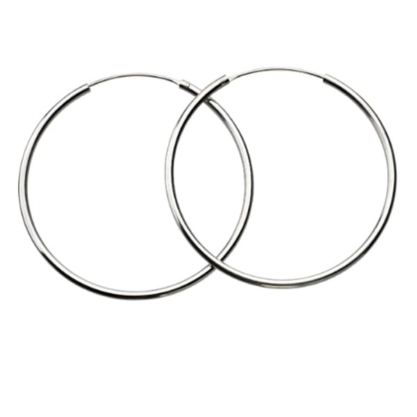 These sterling silver hoop earrings measure 50mm. TubularĀ in design with hinged posts.