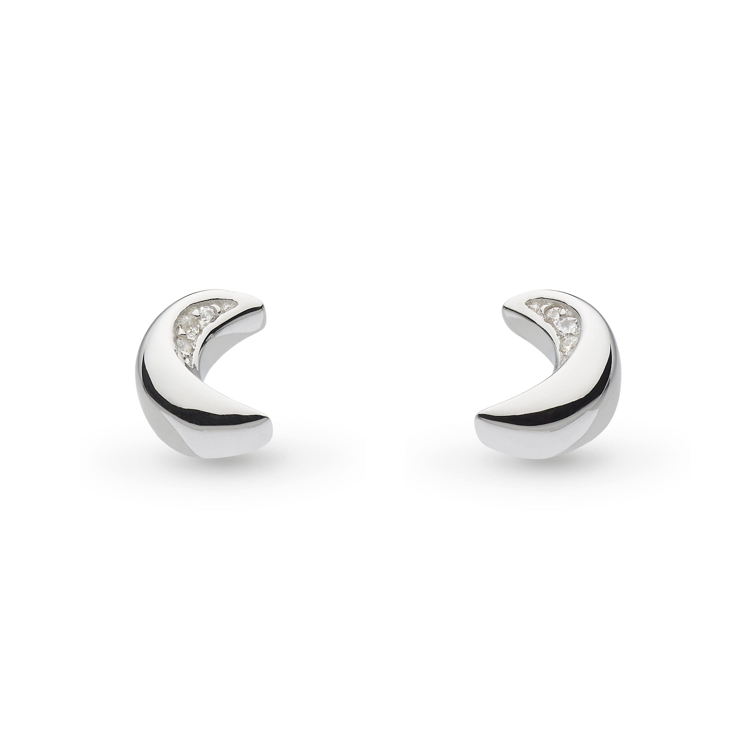 A pair of pretty small silver moon shaped stud earrings with cubic zirconia to add some sparkle.