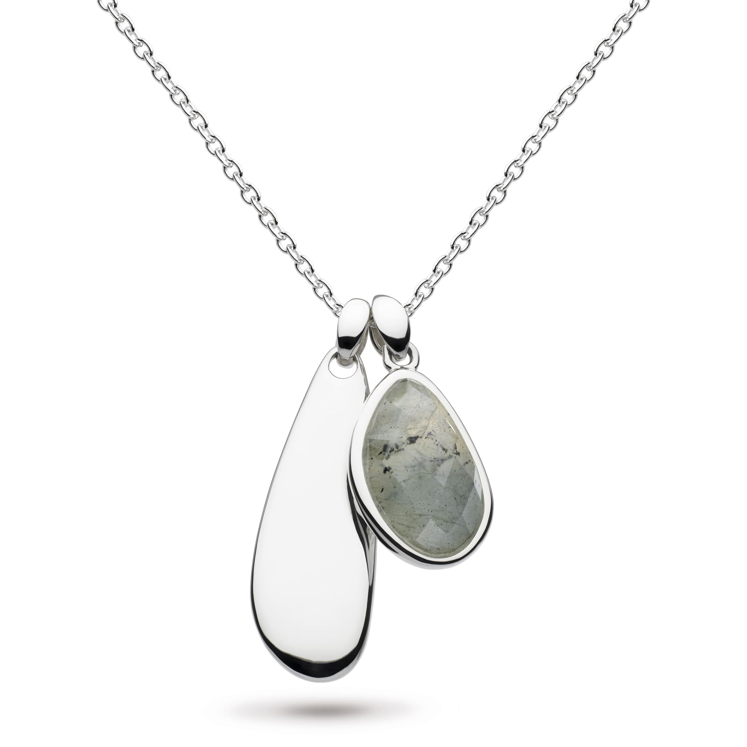 This pretty sterling silver double coast necklace by Kit Heath has two elements one pebble a faceted Labradorite and the other silver.
