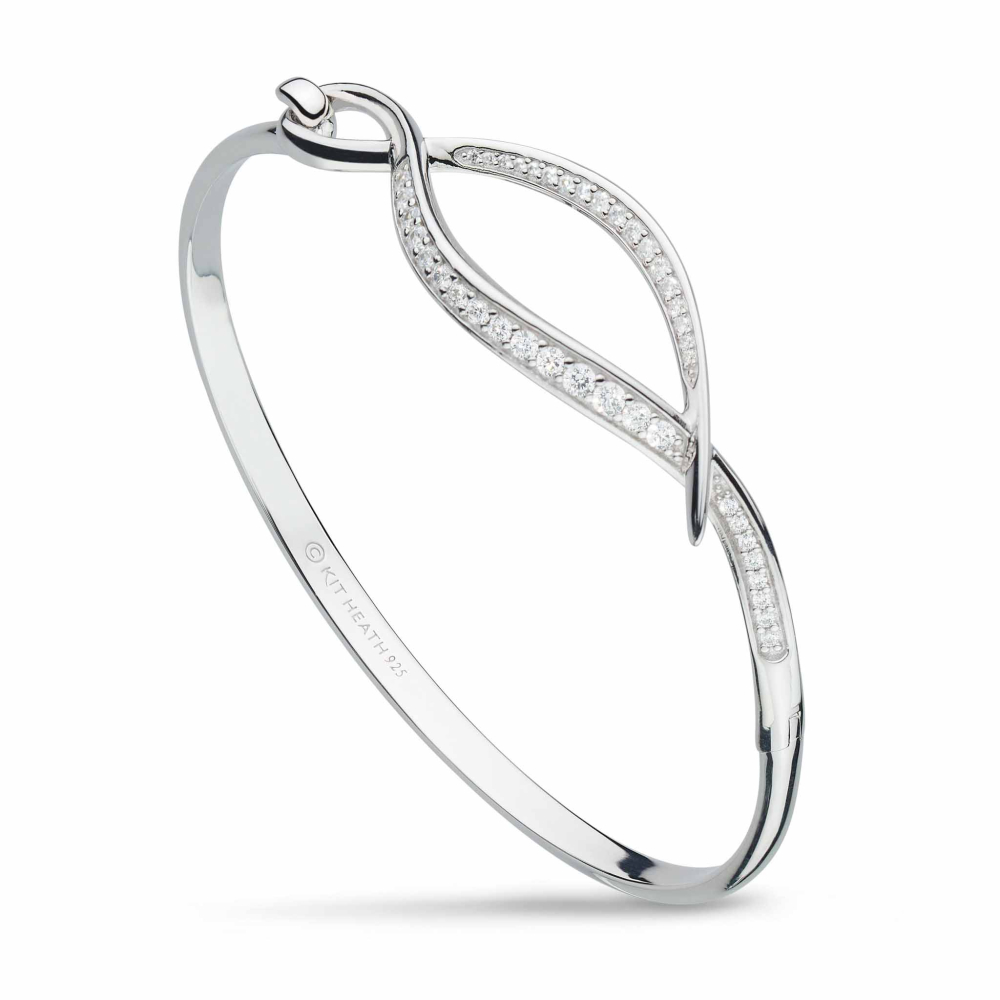 Classic yet edgy, the sleek twists of this hinged bangle is luxuriously set with sparkling cubic zirconia.
