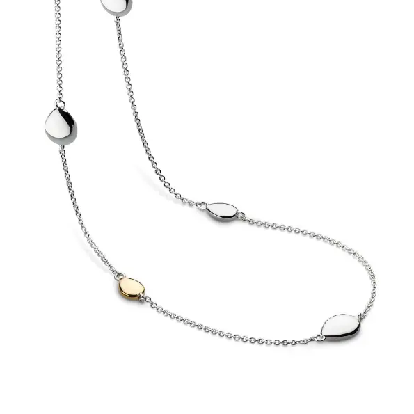 One of our hardest-working classics from our Pebble collection has been zhooshed up with an upgrade to rhodium-plated sterling silver and 18ct gold plate detail. Timeless in style, it’s no wonder it remains one of our all-time best-sellers with its simple station-style aesthetic, along with the extra little something in the form of a single 18ct gold plated pebble to remind us of those hot summers spent on near- or faraway shores. Wear and layer this beauty at its full 20 inches, or shorten it to 18 inches with the additional link.