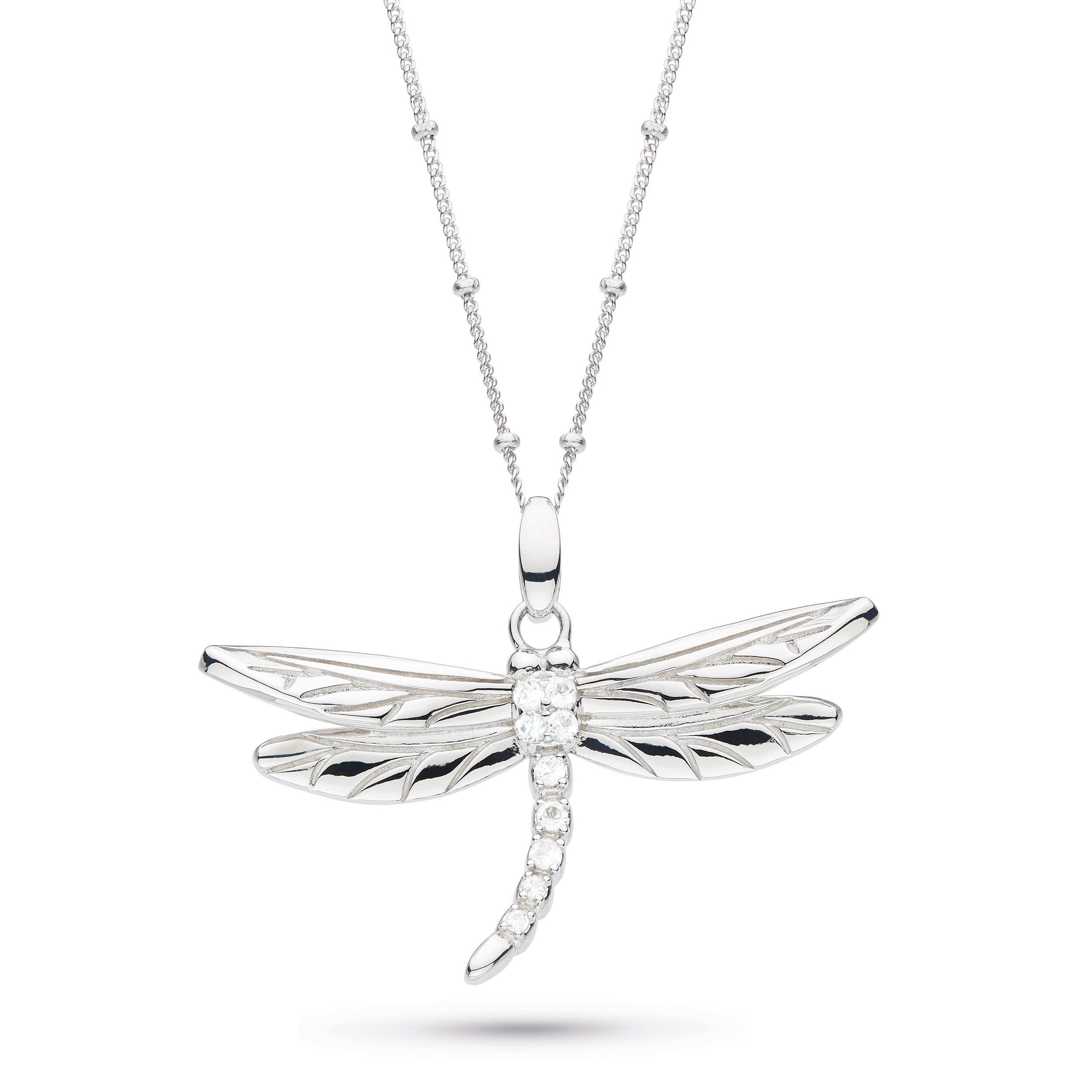 The symbol of romantic transformation, the Dragonfly is full of hope and promise. Beautifully etched with detailed wings, the dragonfly’s body is set with semi-precious white topaz, hanging gracefully on a delicate ball chain.