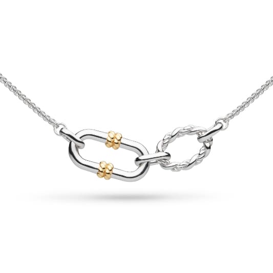 The Marina Rope Link Duo Golden necklace combines the elegance of polished chain links with the nautical charm of rope-like details, symbolising the beautiful blend of strength and style. The design is inspired by the enduring connection to the sea, where the interconnected ropes and links represent the bonds that hold us together and the spirit of wayfaring adventure. Made in sterling silver with touches of 18ct gold plate, it’s the perfect piece for layering for your own seaside-inspired look.