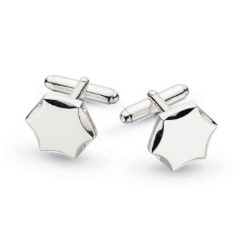 Inspired by their Rokk design, these modern cufflinks are designed with three dimensional facets and edges. Heavy weight and button shaped, the hinged back is easy to use and wear.