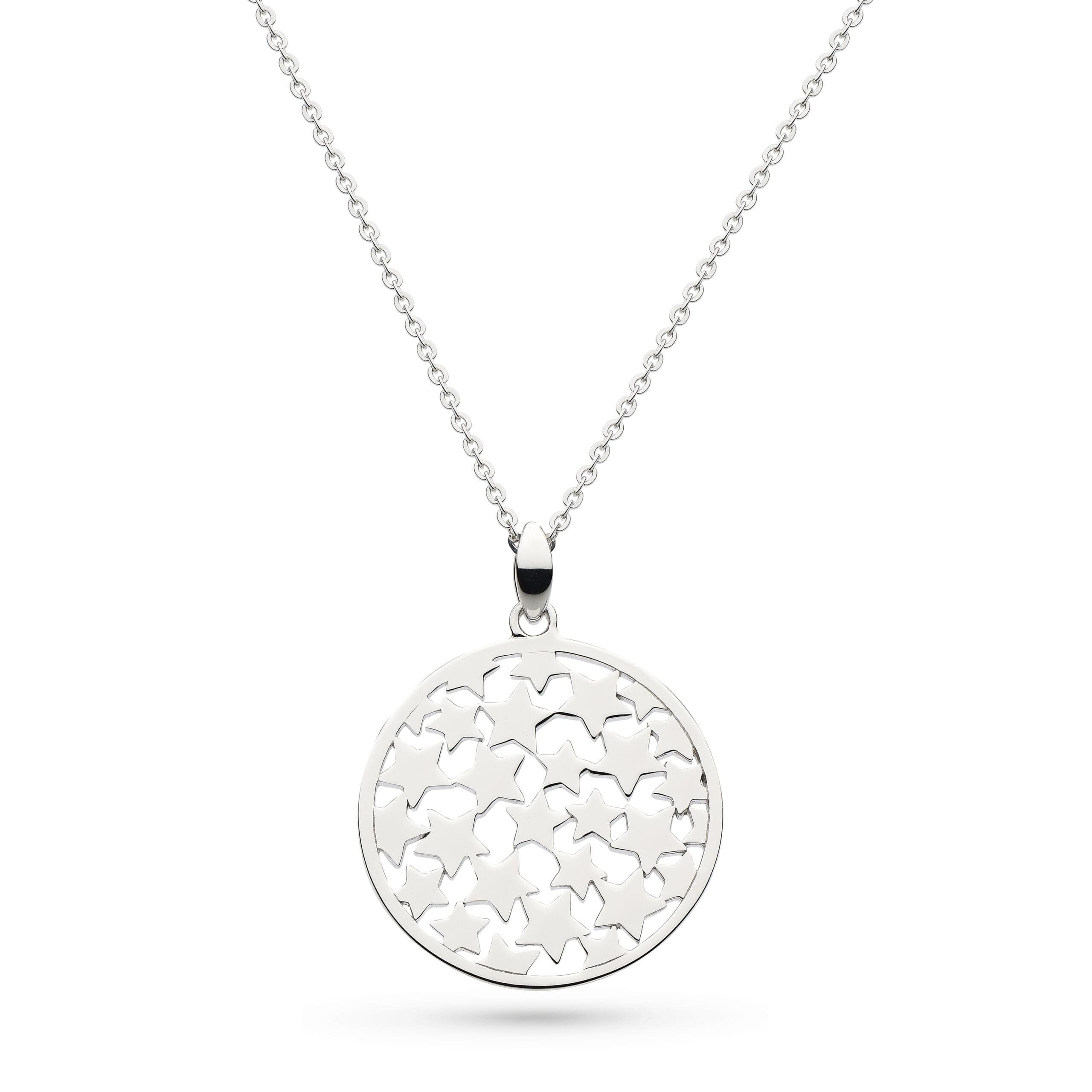 Sparkling in its ingenious simplicity, a cluster of sterling silver stars intersect in this dazzling disc necklace.