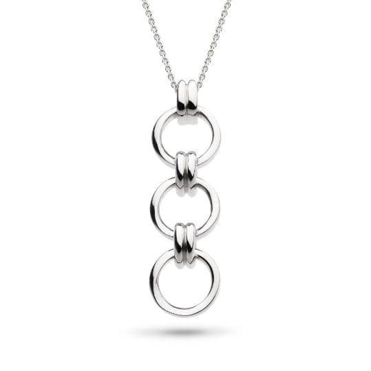 The distinctive Bevel Unity Trio necklace has three sterling silver interconnected movable circles, joined in friendship with smaller bonded duo-curved links. As a modern yet timeless gift, it conveys the symbolic strength of connection, friendship and oneness.