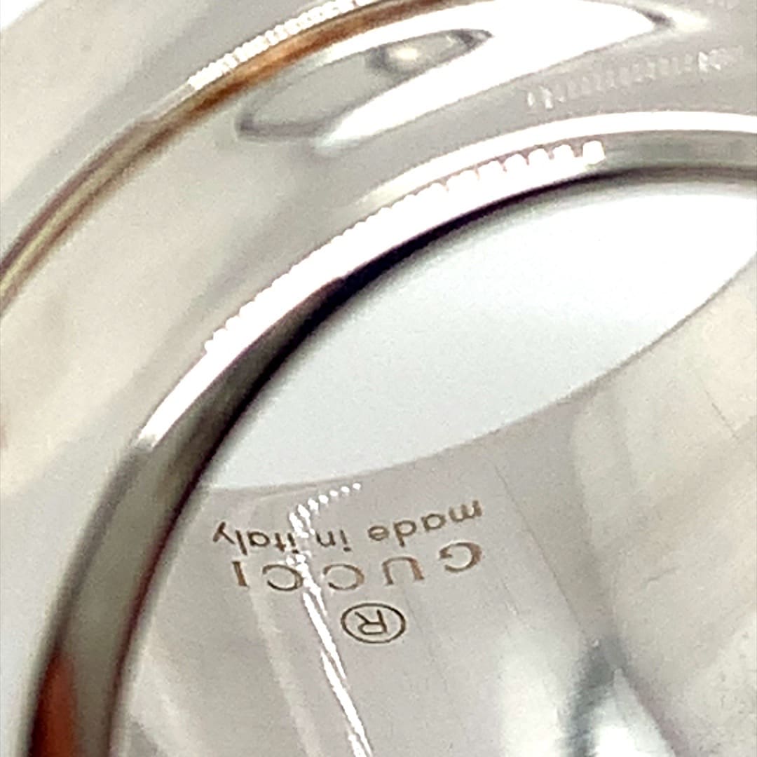 A genuine Gucci silver ring in a chunky bamboo design highlighted with Gucci branding.