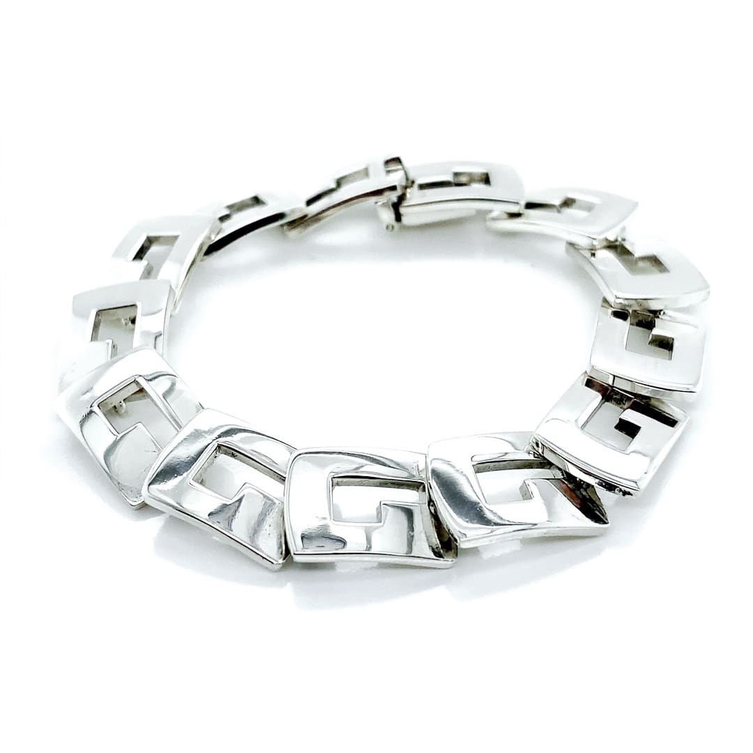 A Gucci silver bracelet in a repeat logo design and integral box clasp. Comes with original pouch.