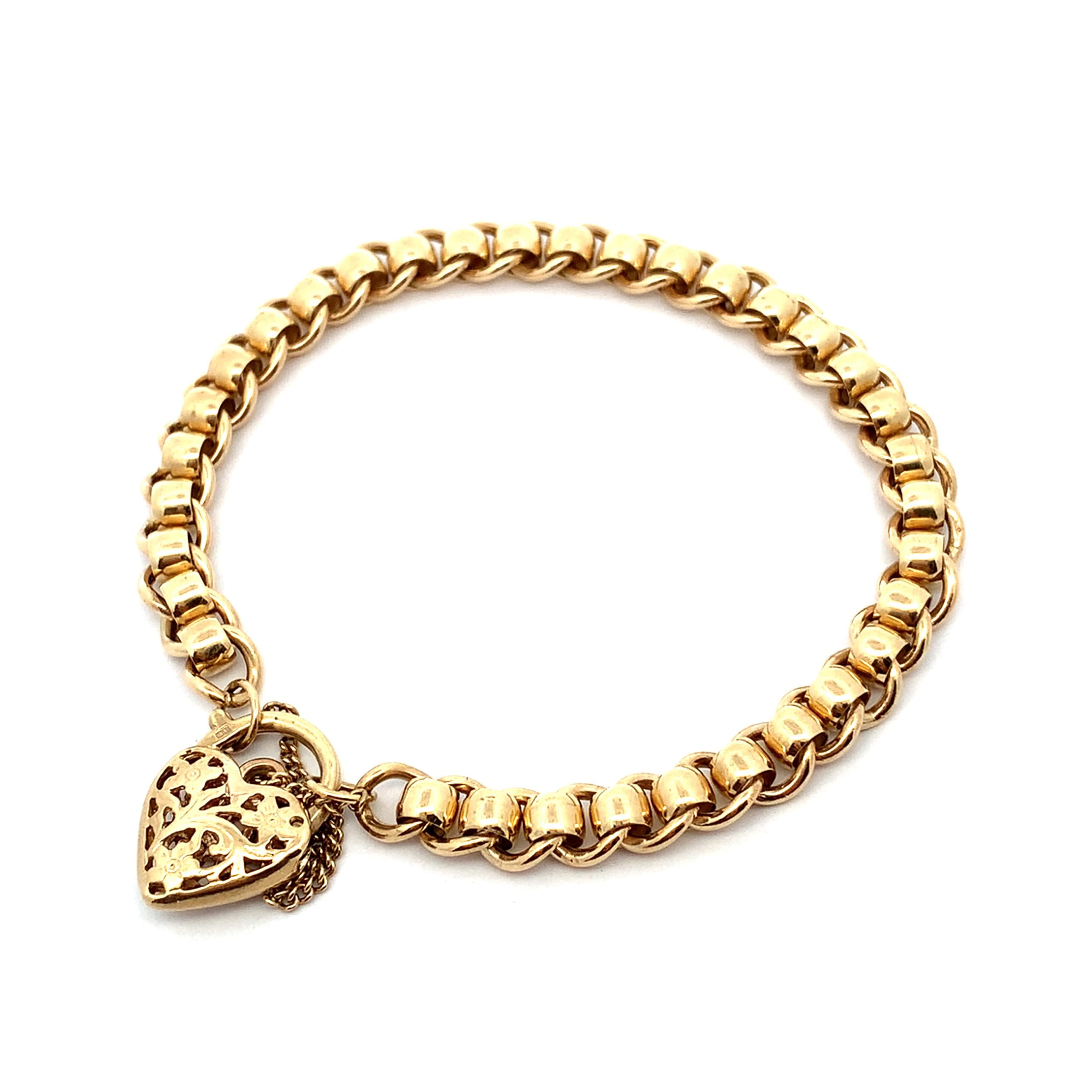 A beautiful solid link ‘roller ball’ bracelet with an unusual rounded floral heart lock.