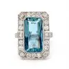 An absolutely stunning hand made Aquamarine and Diamond Art Deco styled ring. The large step cut Aquamarine is collet set with a millegrain edge and the frame is set with round and square cut Diamonds with raised centre and corner stones for a beautiful deco feel. There is also Diamond pave work on the shoulders. This ring is a one-off handmade piece.