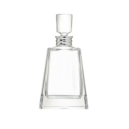 A beautiful crystal glass decanter with scalloped sides and stopper and a profiled sterling silver collar.