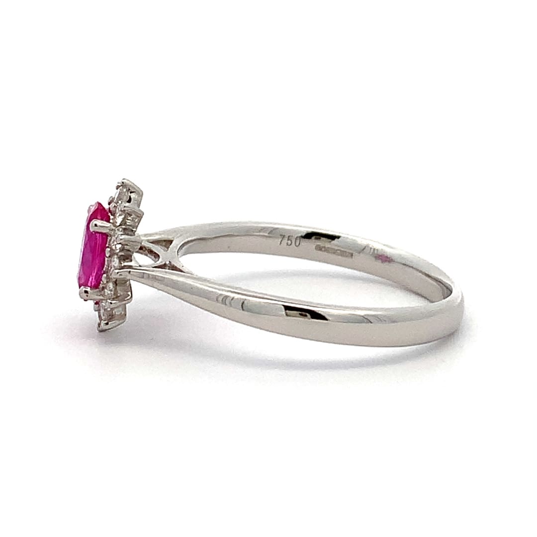 An 18 carat white gold pink sapphire and diamond cluster ring. This ring can be worn as a dress ring or an engagement ring.