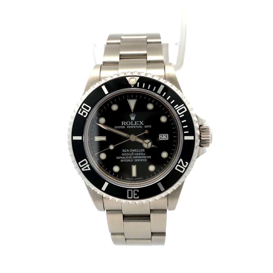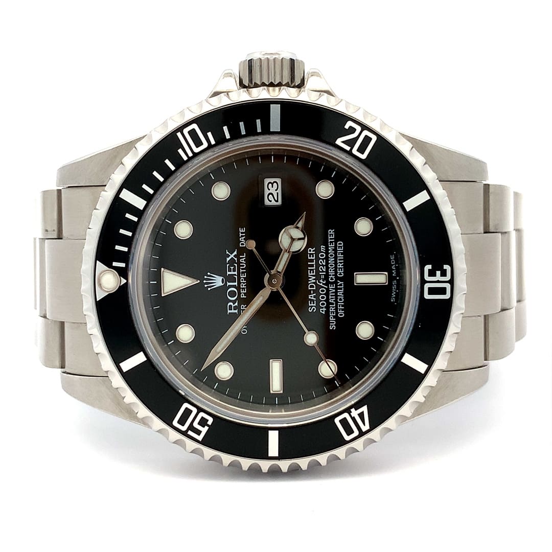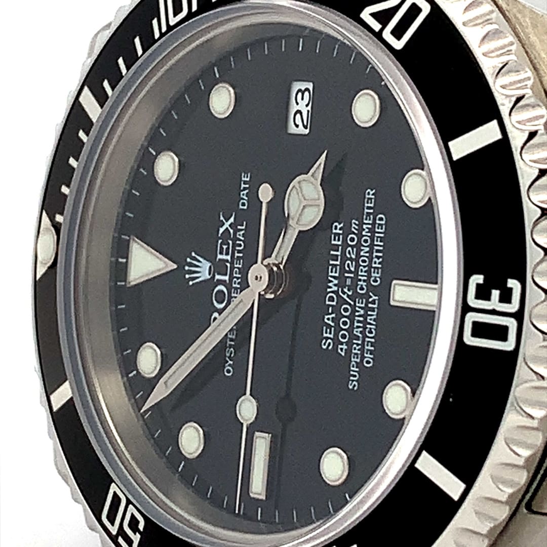 This is a gents Rolex chronometer diving watch. Self-winding automatic movement with 48hr power reserve. Black dial with luminous hour markers and hands and date window at 3 o’clock. Stainless steel case and bracelet with folding clasp.