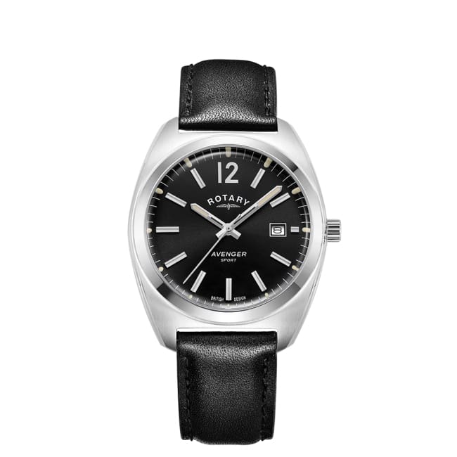 Carrying a racing retro aesthetic, the new Avenger Sport features a stainless steel 38mm vintage look case which frames a black sunray dial with a date window. Bubble mineral glass married with the smooth dynamic curved side of the case reinstates the Avenger’s nod to the past. This timepiece features applied indices and Arabic numerals at 12; and comes with a black leather strap. This unique, quartz watch family is water resistant up to 50m. Fusing both sport and style, the new Avenger Sport draws on Rotary’s rich heritage from the 1960s, blending speed and excitement with a touch of luxury.