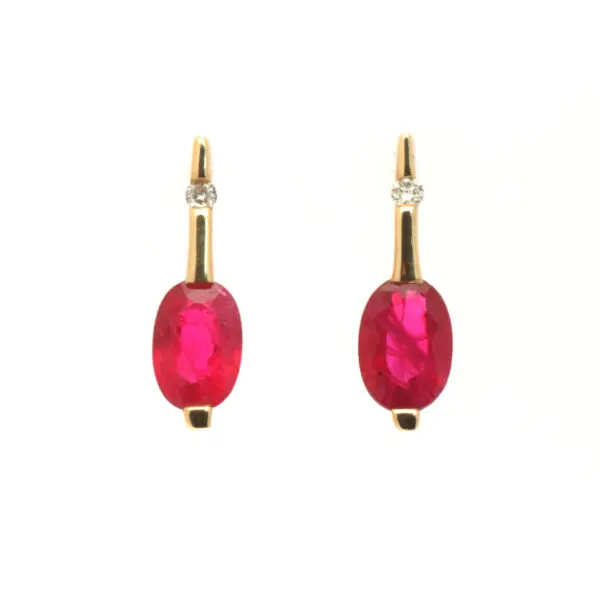 These unusual contemporary earrings are set with oval Rubies and accented with a brilliant cut diamond.