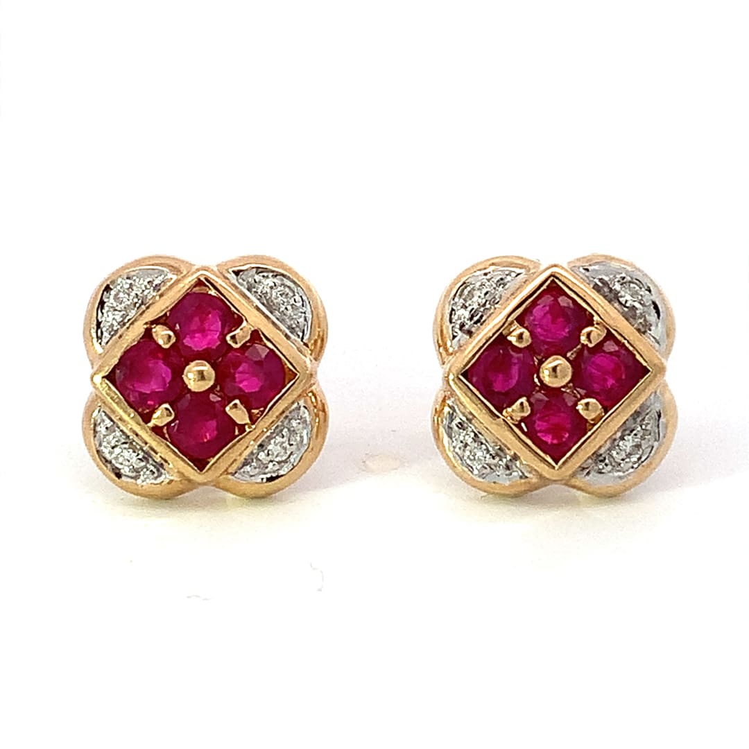 Pretty quatrefoil design earrings – each set with square cut ruby and small accent diamonds.