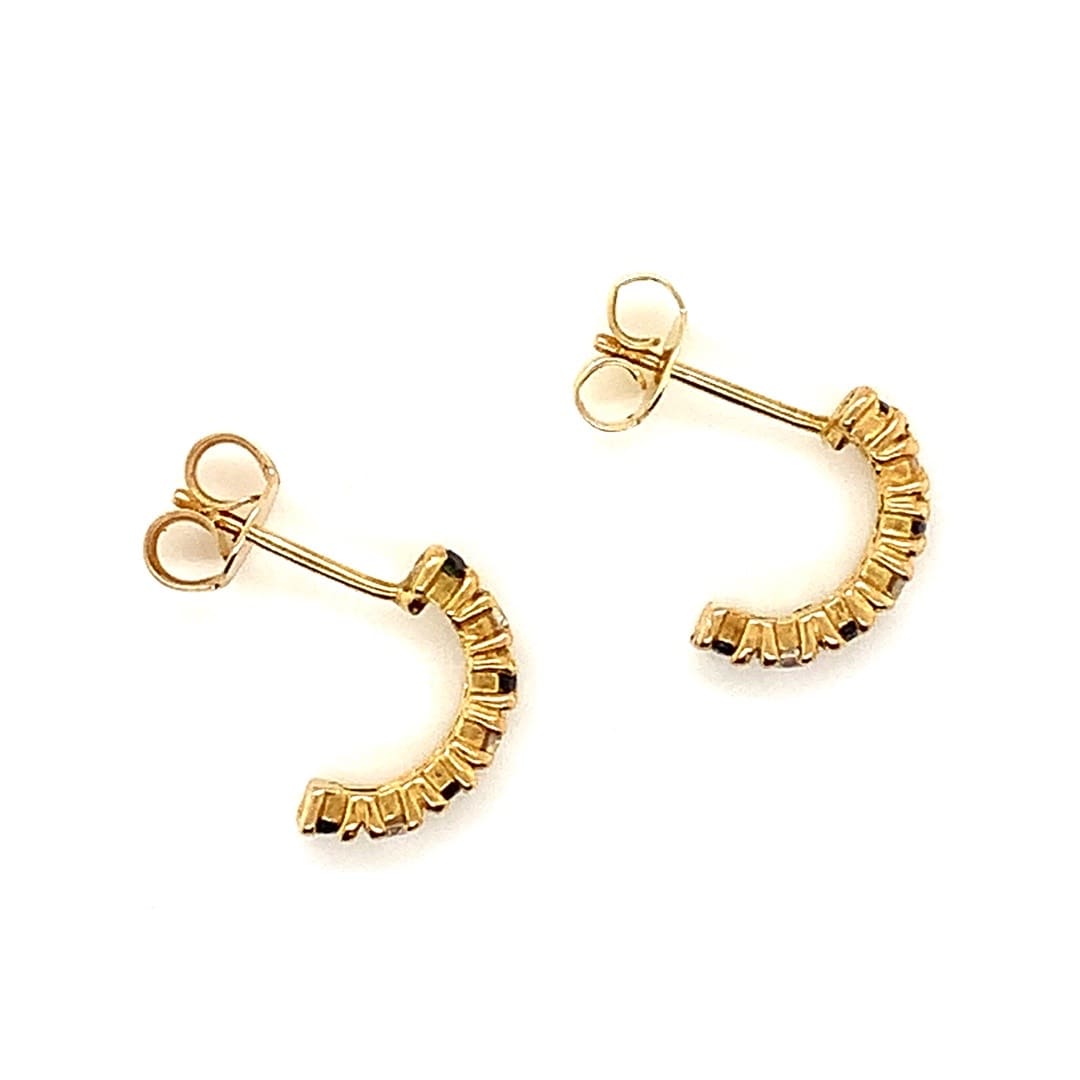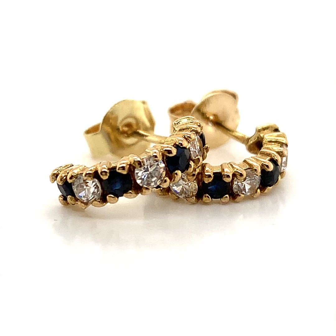 Neat half hoop earrings claw set with round cut blue Sapphires and round cubic zirconia.