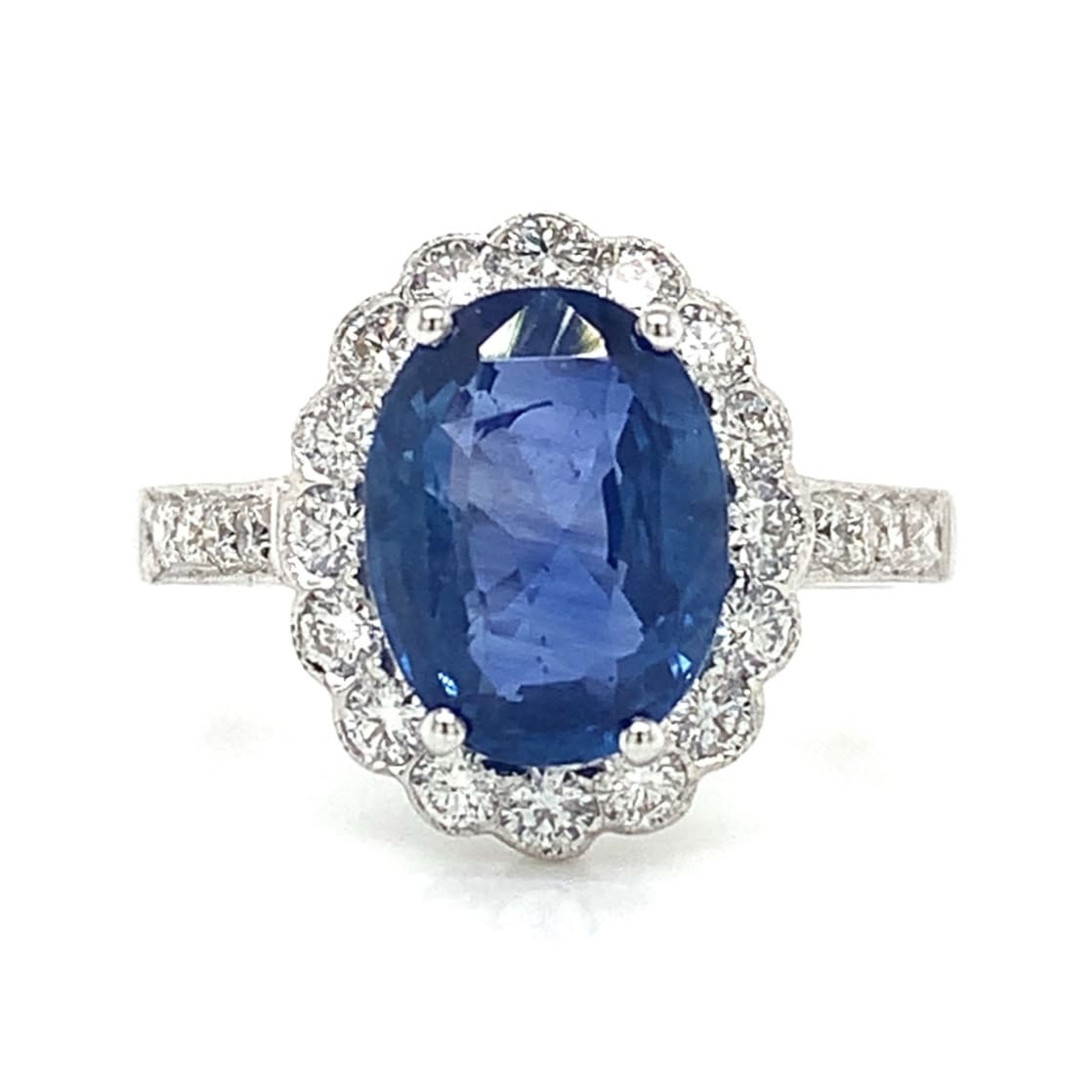 An elegant Vintage looking 18 carat white gold sapphire and diamond ring.