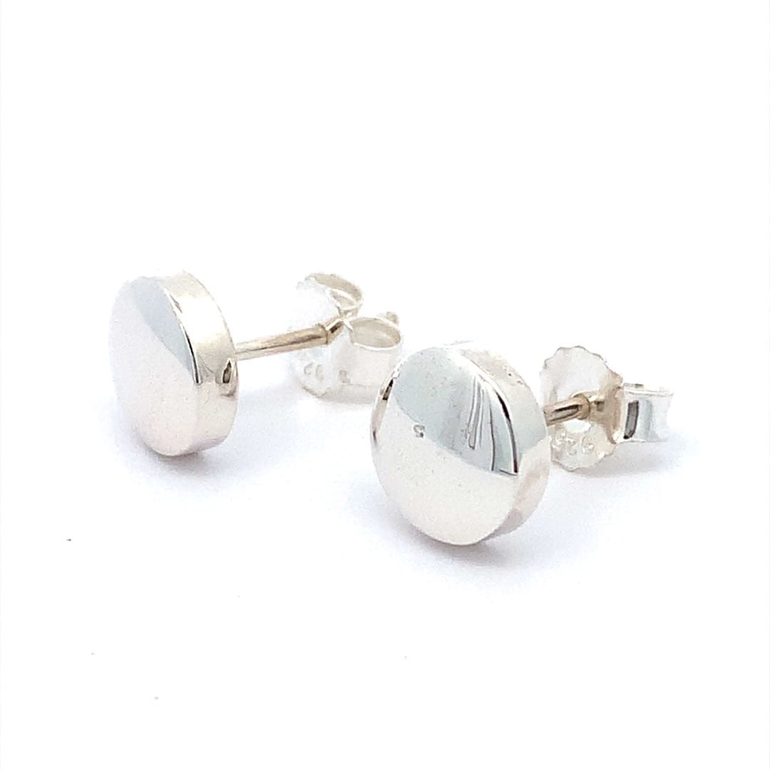 A pair of polished chunky stud earrings in sterling silver with scroll back fittings.