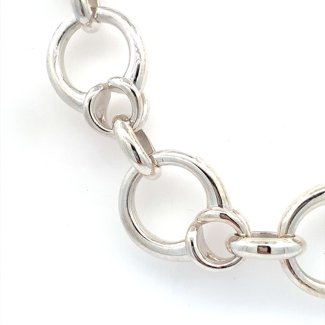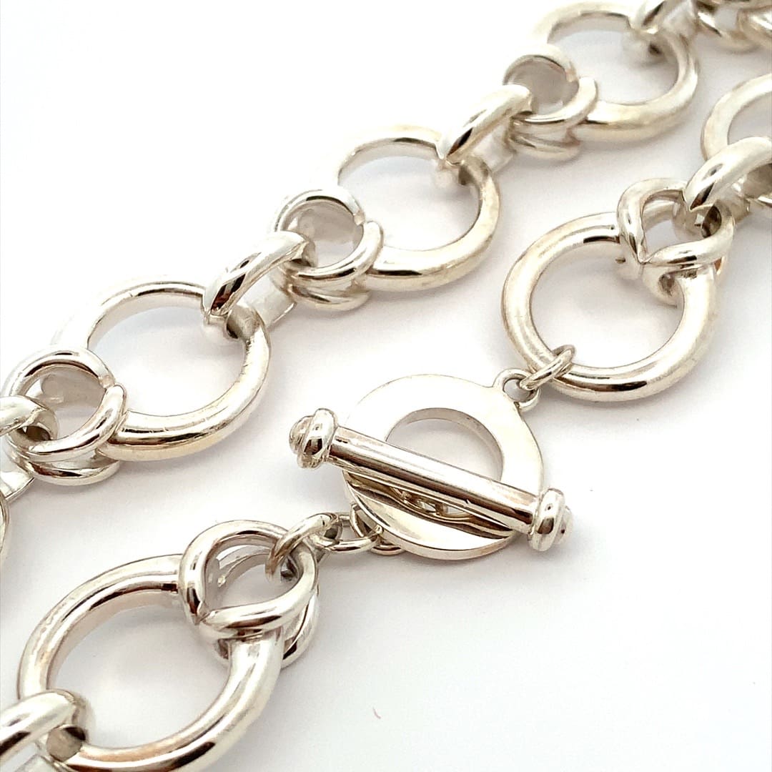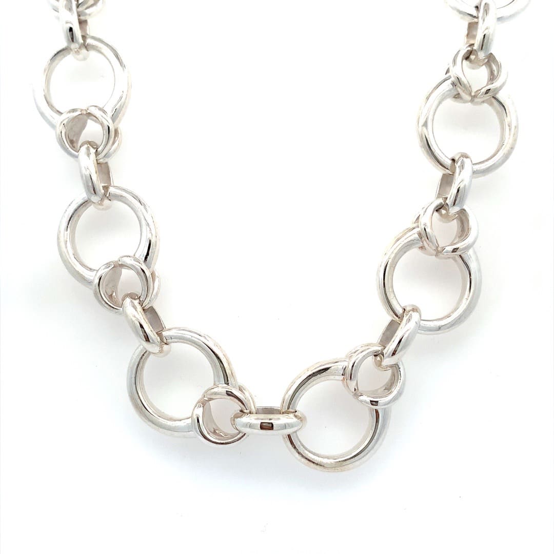 A statement sterling silver chunky link necklace with a ring and bar fastening.