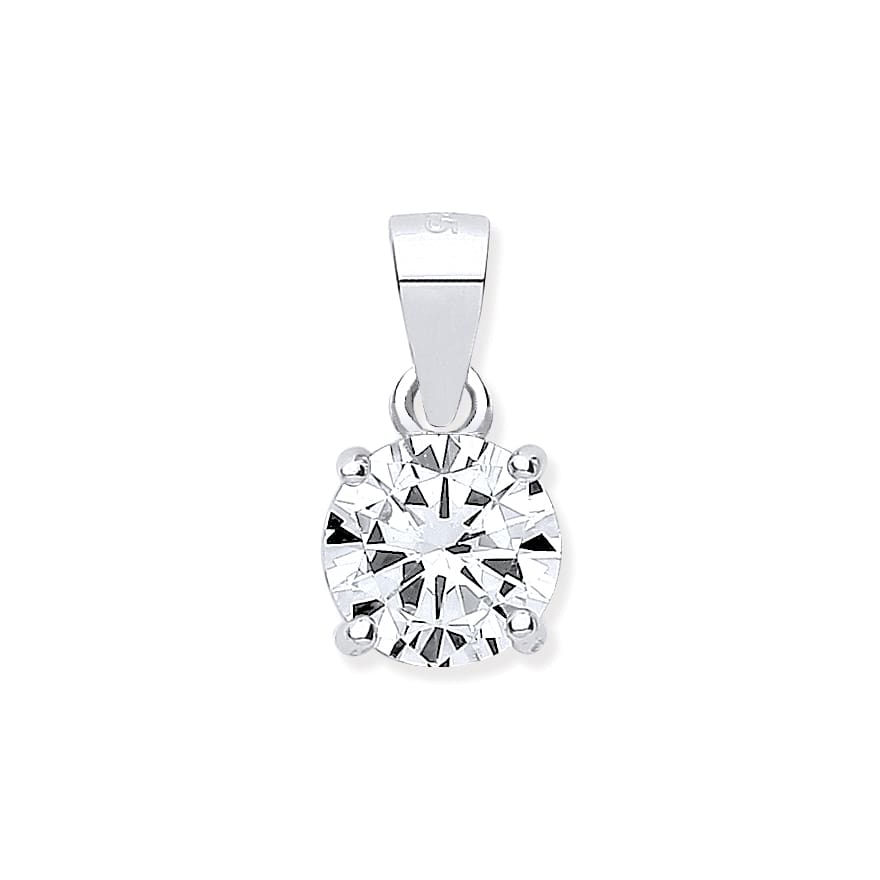 A sparkly round cut cubic zirconia claw set in sterling silver. With an 18 inch flat curb link chain.