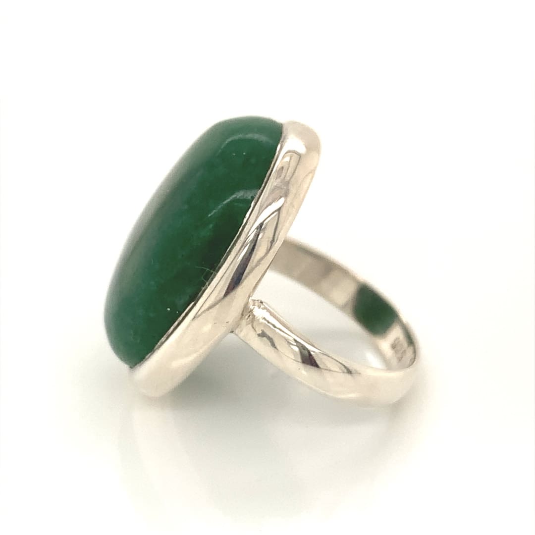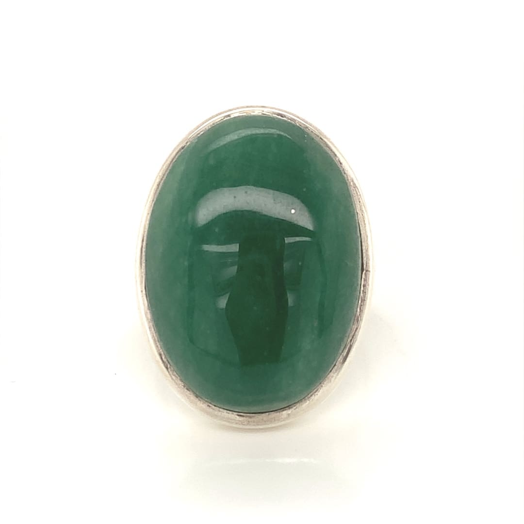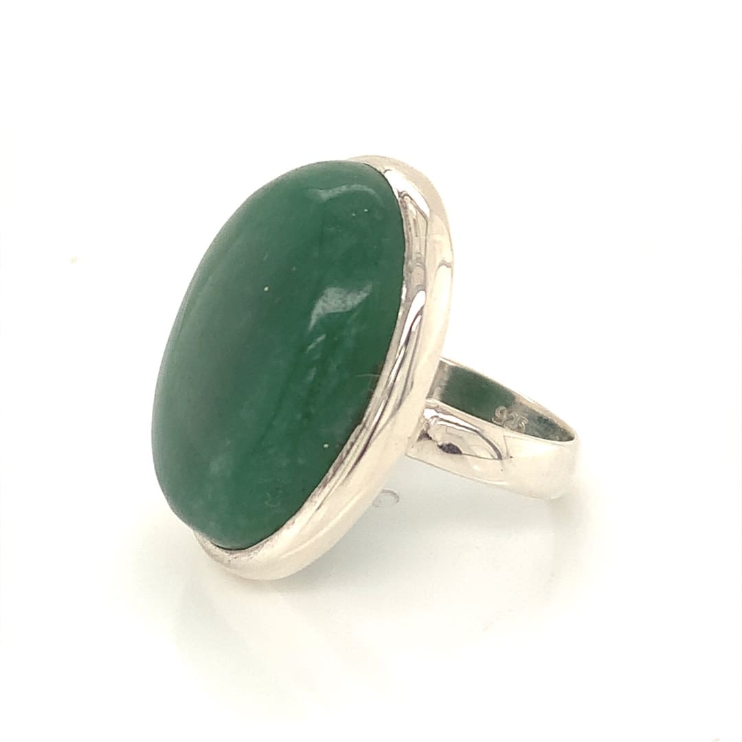 A large silver dress ring set with an oval green agate cabochon.