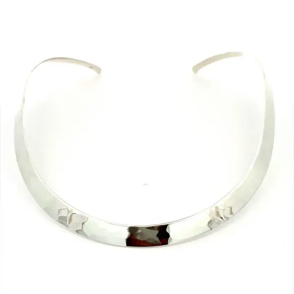 A slightly flexible sterling silver solid collar with a sparkling hammered finish.