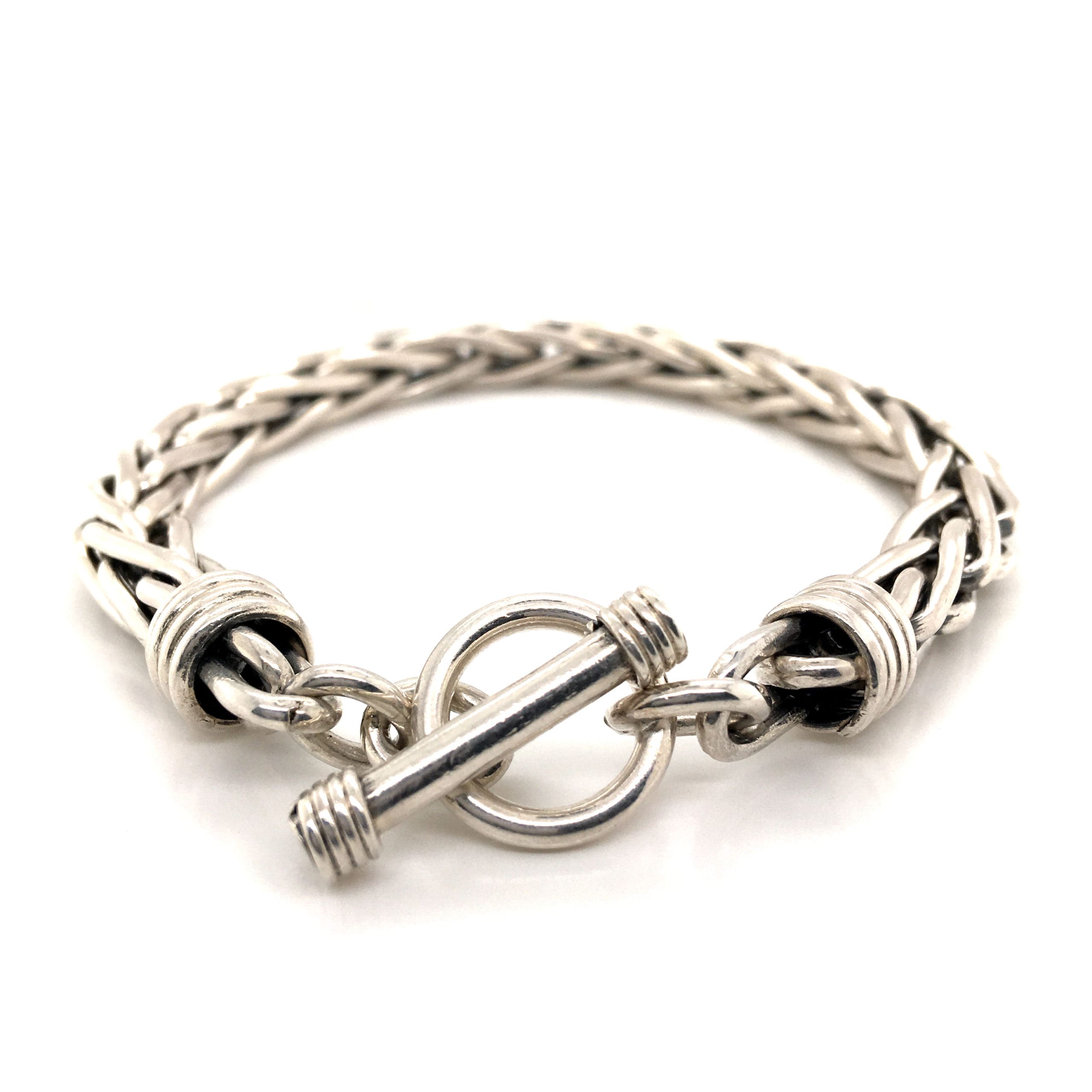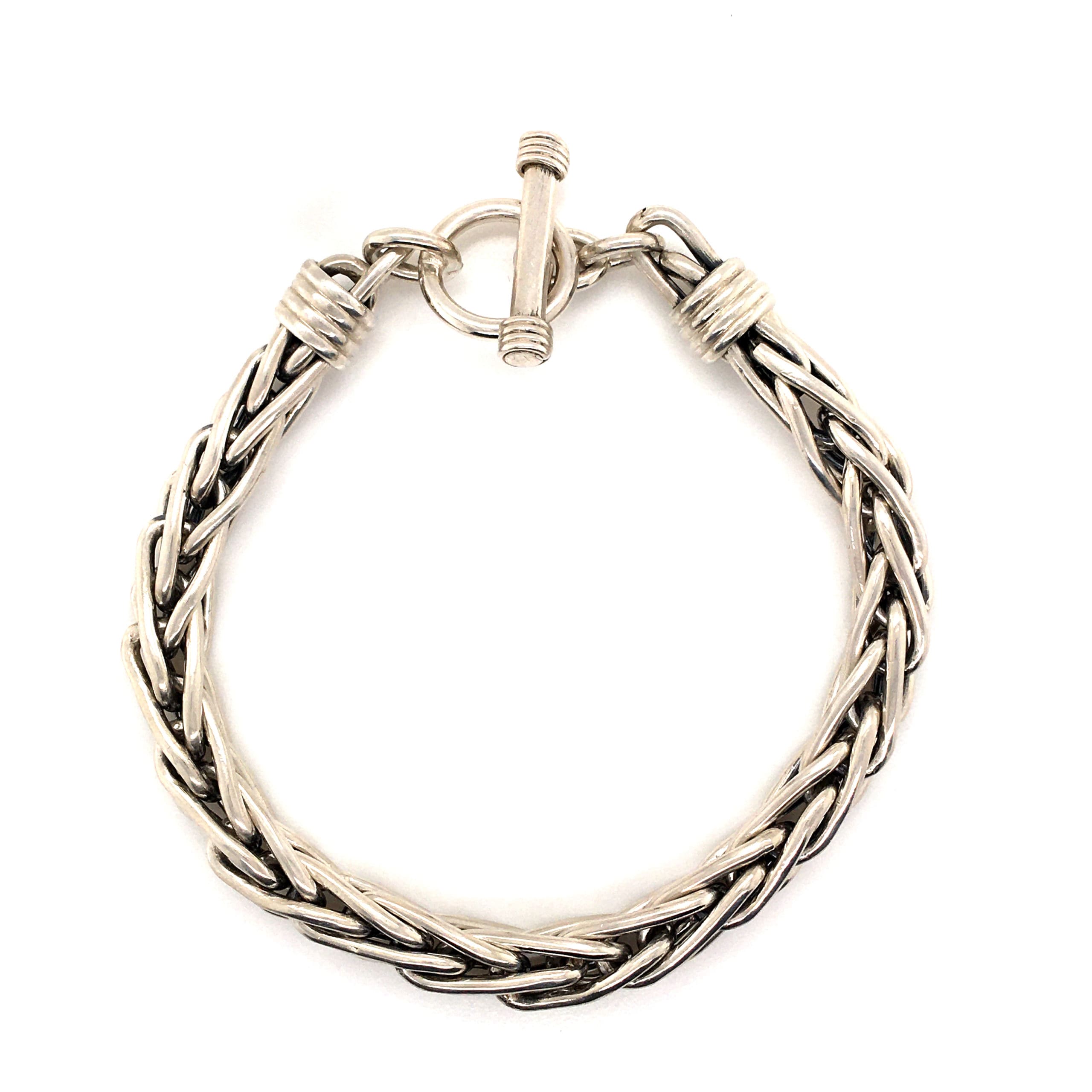 A chunky foxtail link bracelet, handmade in sterling silver. With a ring & bar clasp.