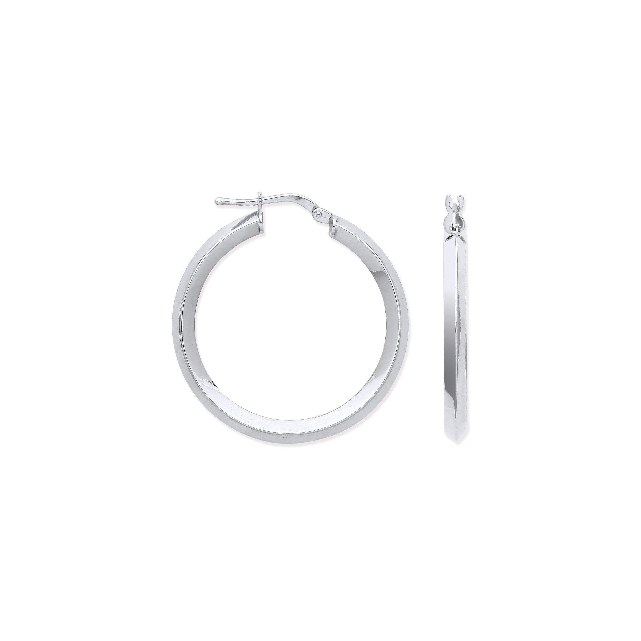 A pair of 30mm diameter square section hoop earrings with a polished finish.